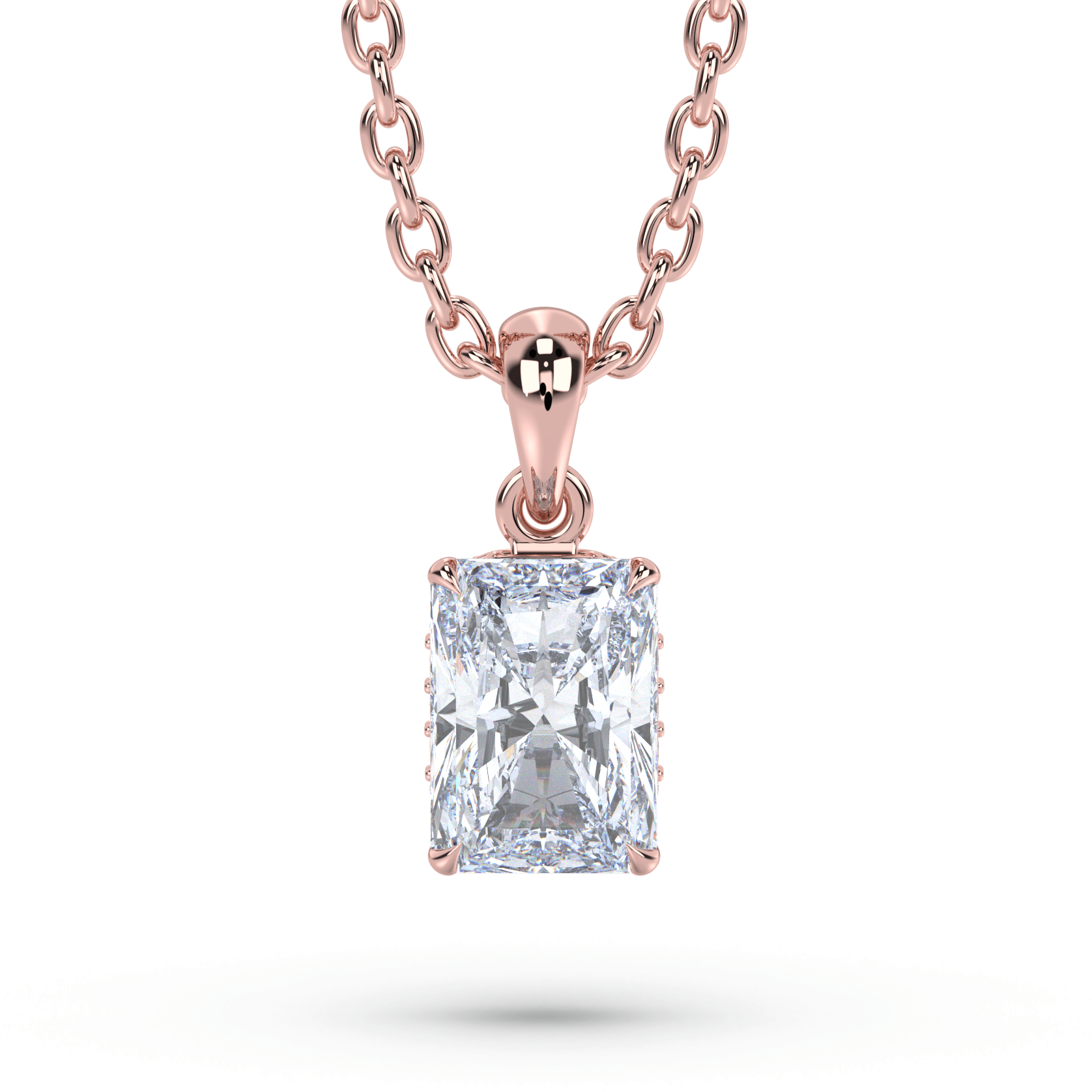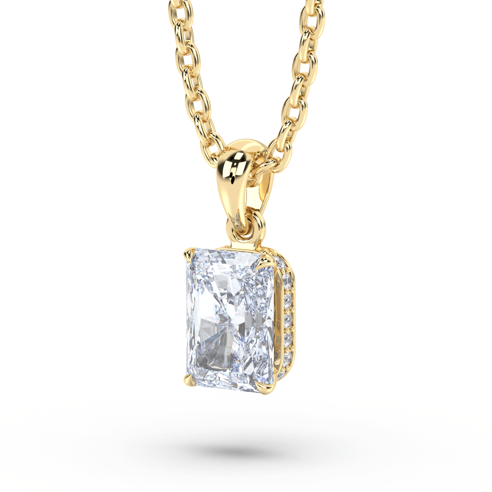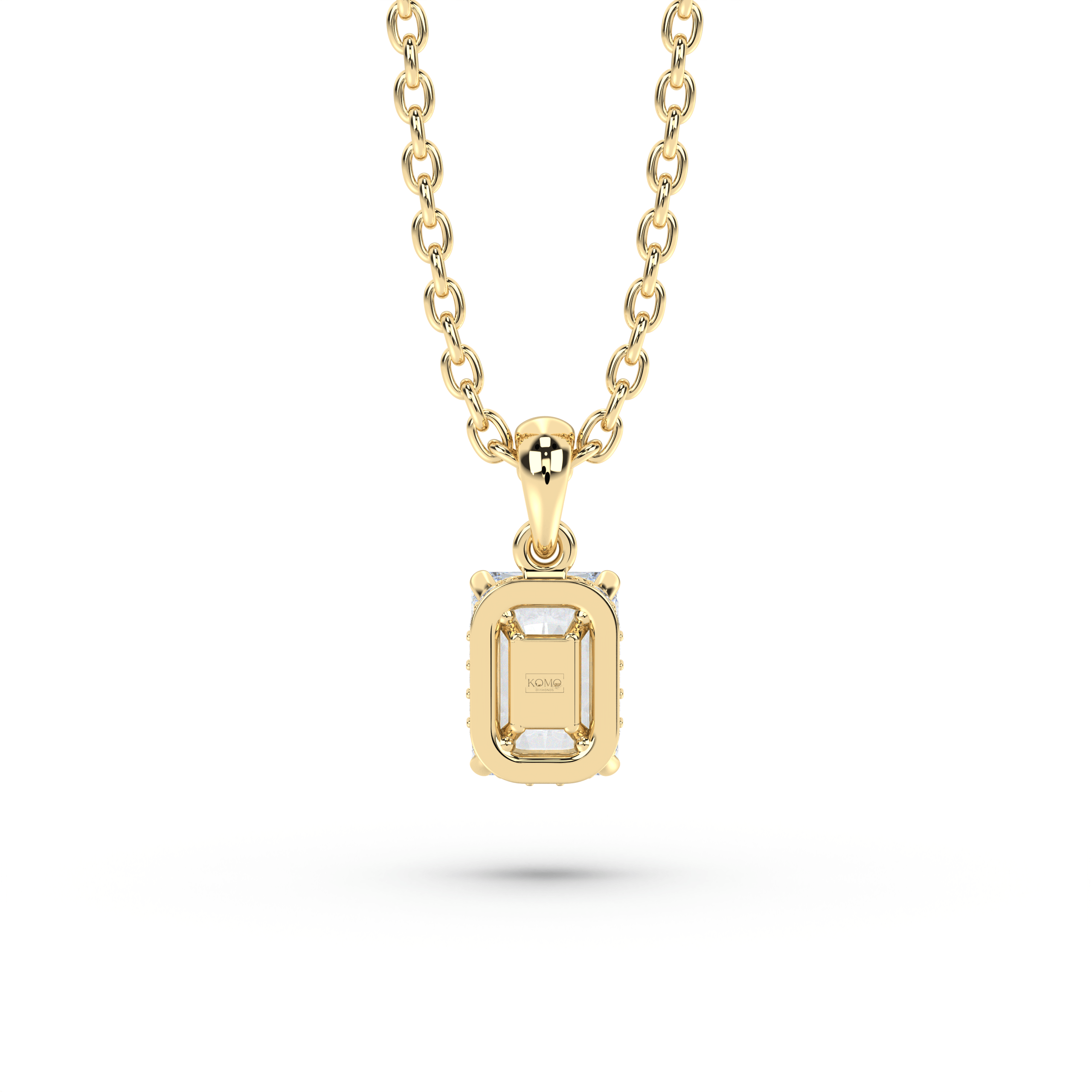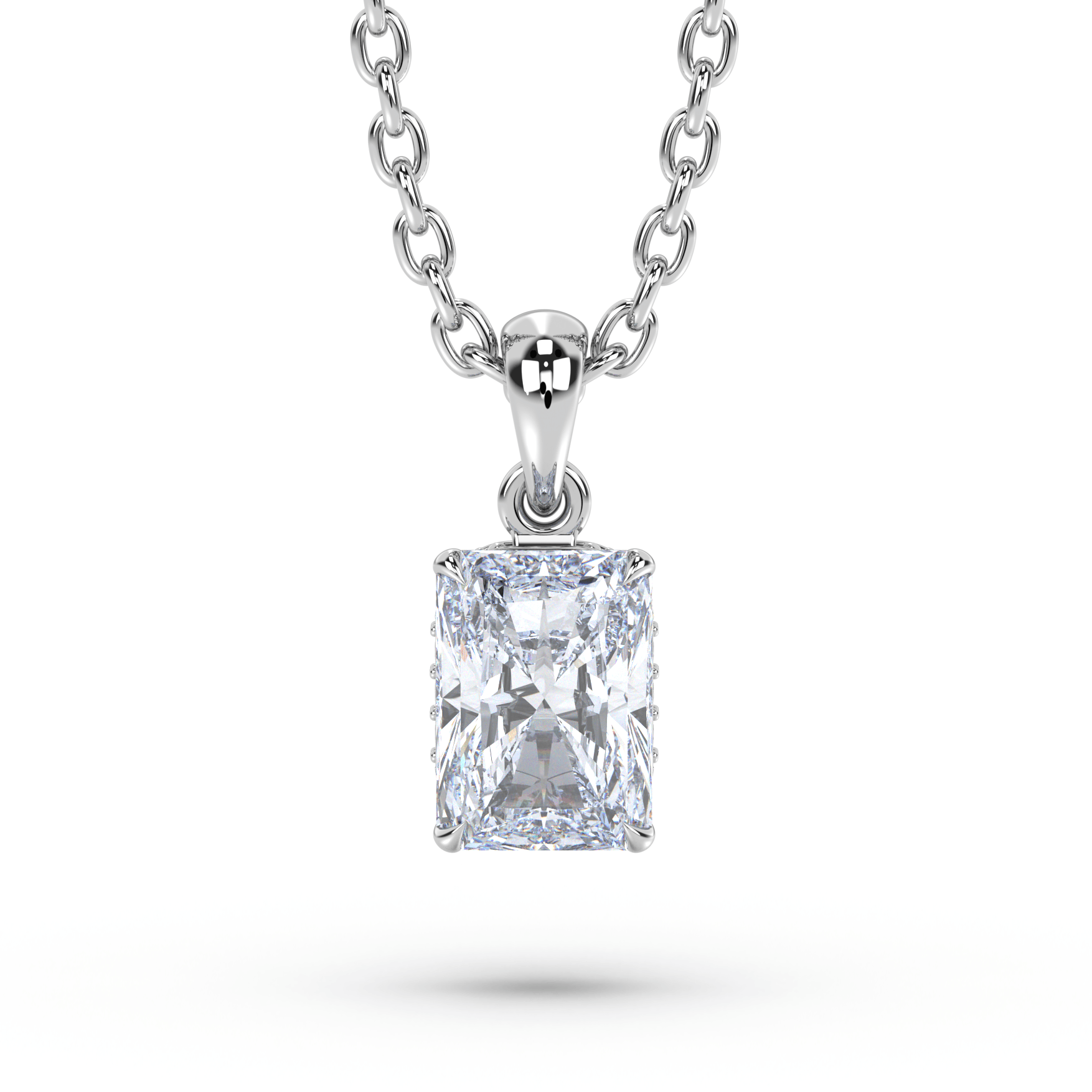 Suspended on an 18-inch chain, the Vivienne embodies the engineered elegance of Art Deco design with low-profile construction and sharp symmetry. The protective bezel setting creates edge-to-edge clarity while the accent diamonds add structural detail, delivering the metalwork precision that makes Deco Atelier jewelry feel tailored and refined.