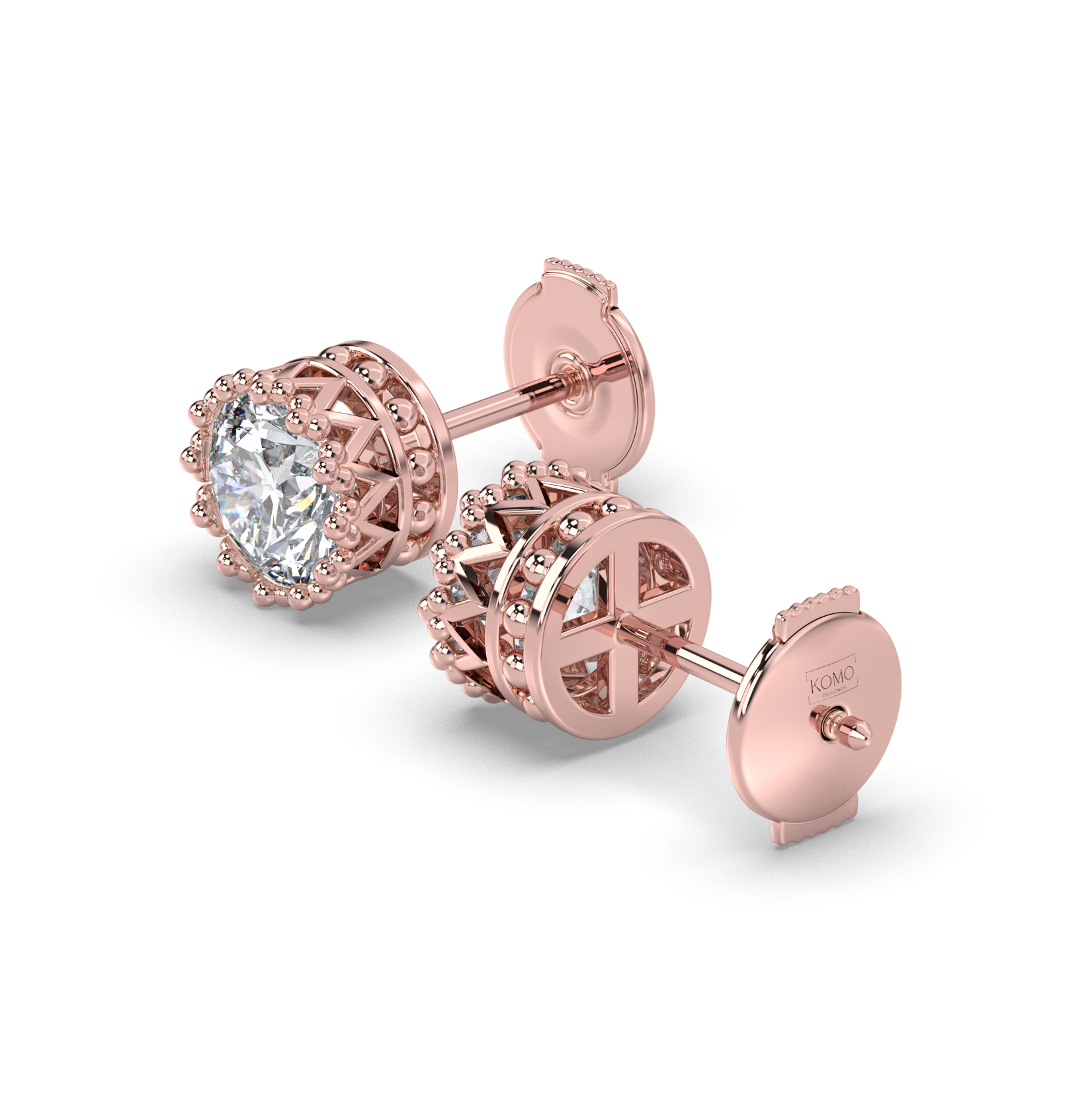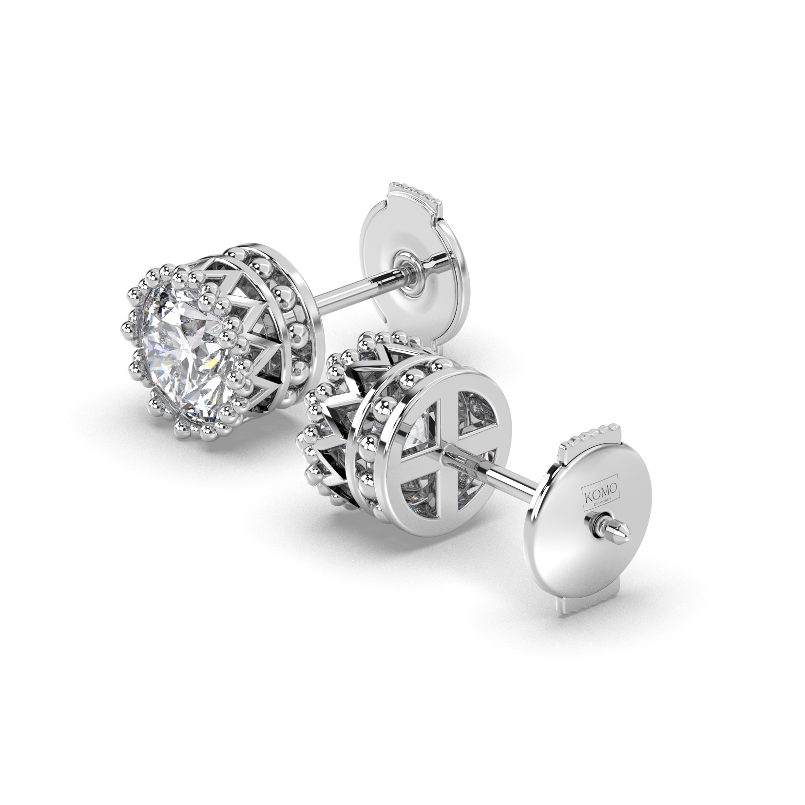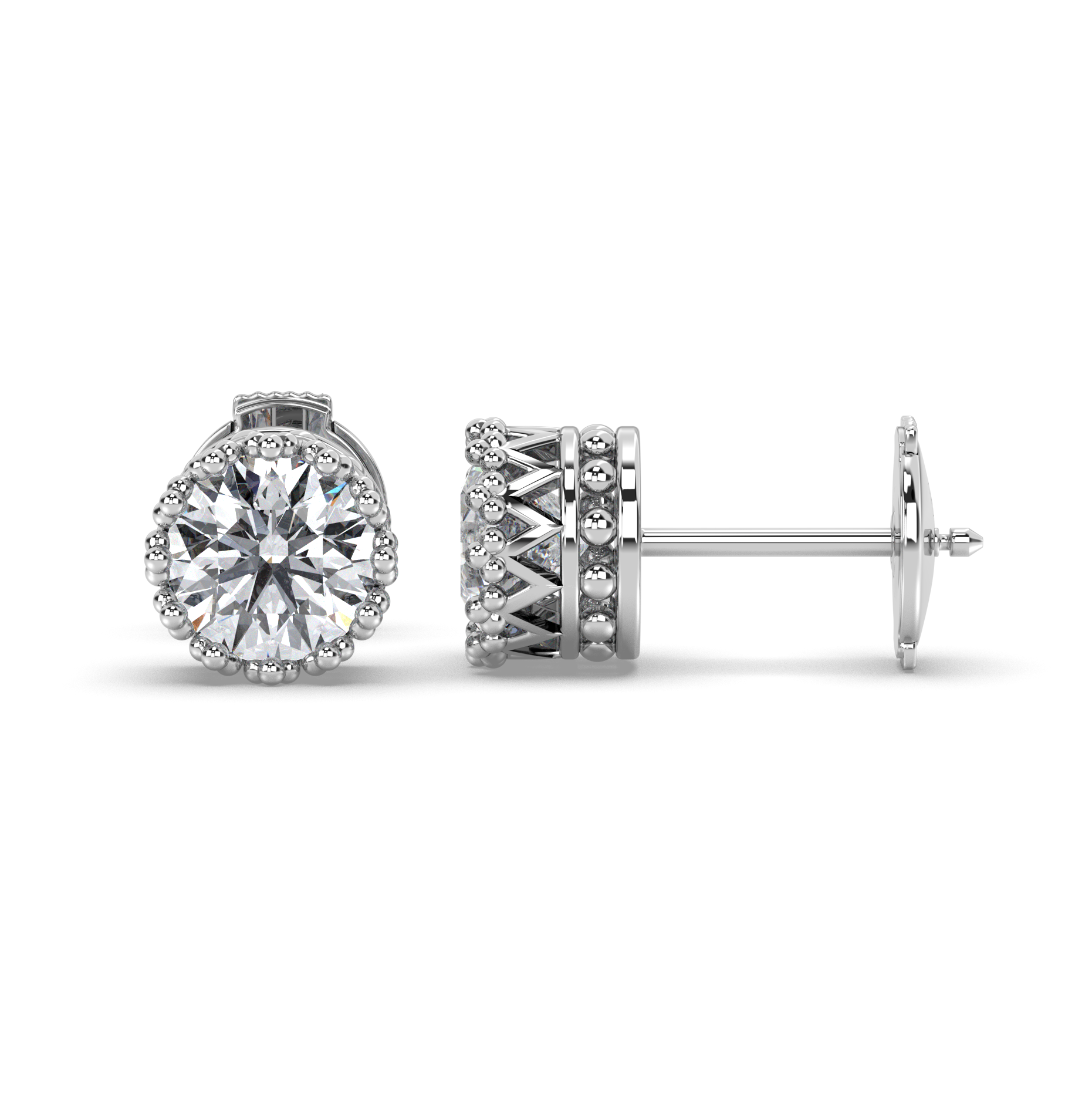 Heirloom Round Lab Grown Diamond Stud Earrings: Imperial Crown Setting