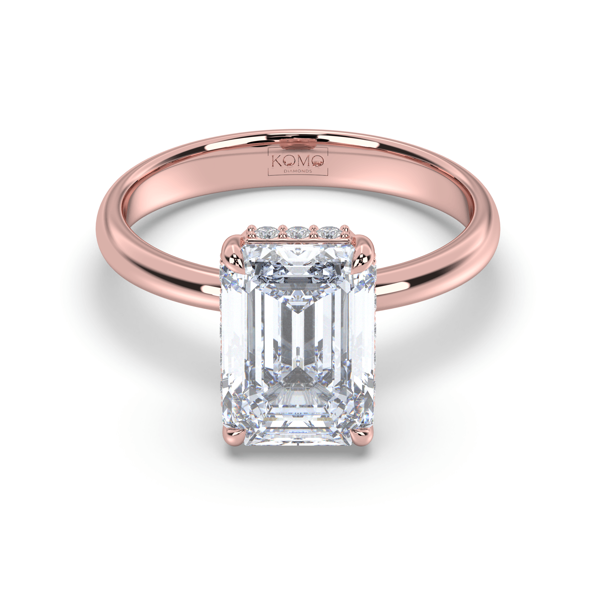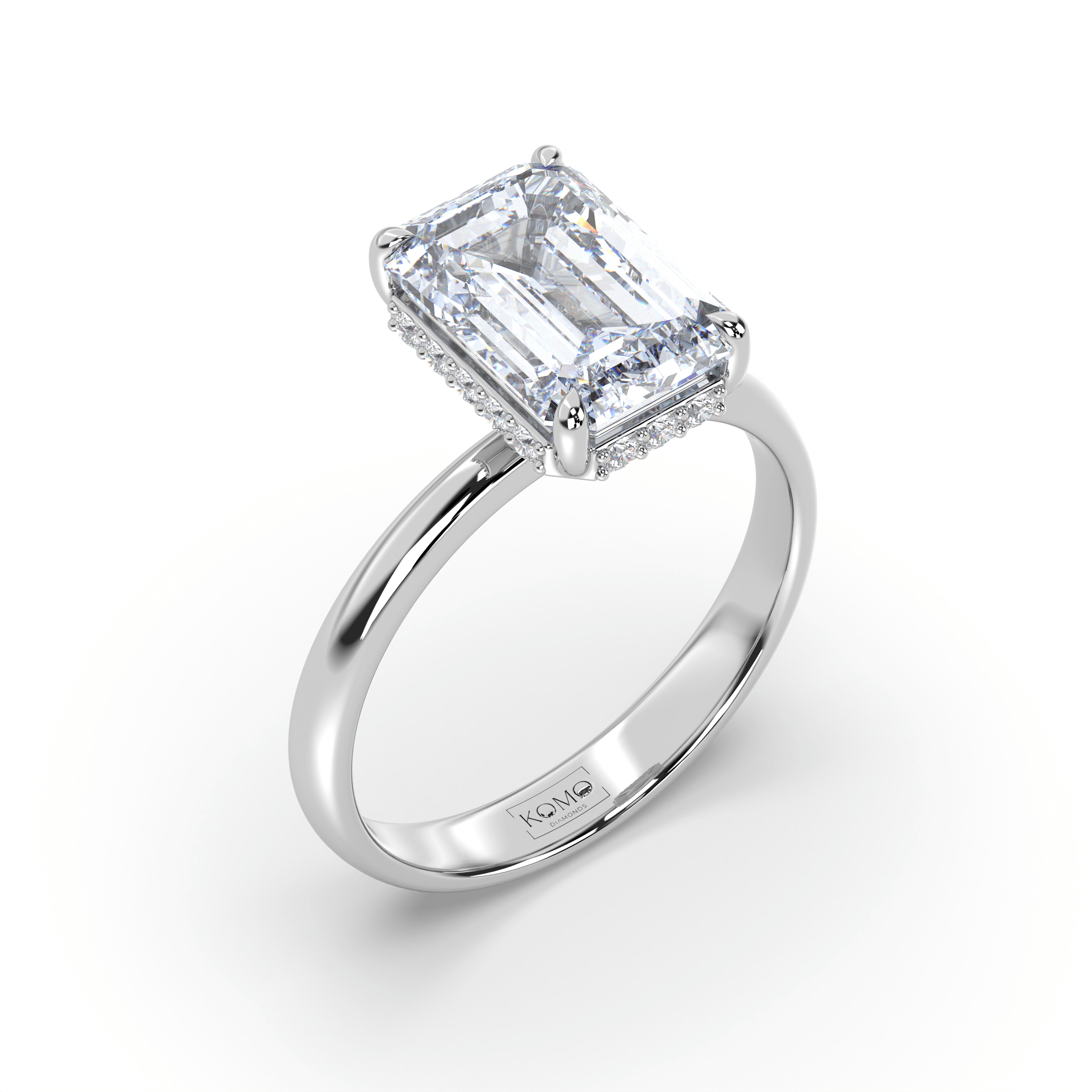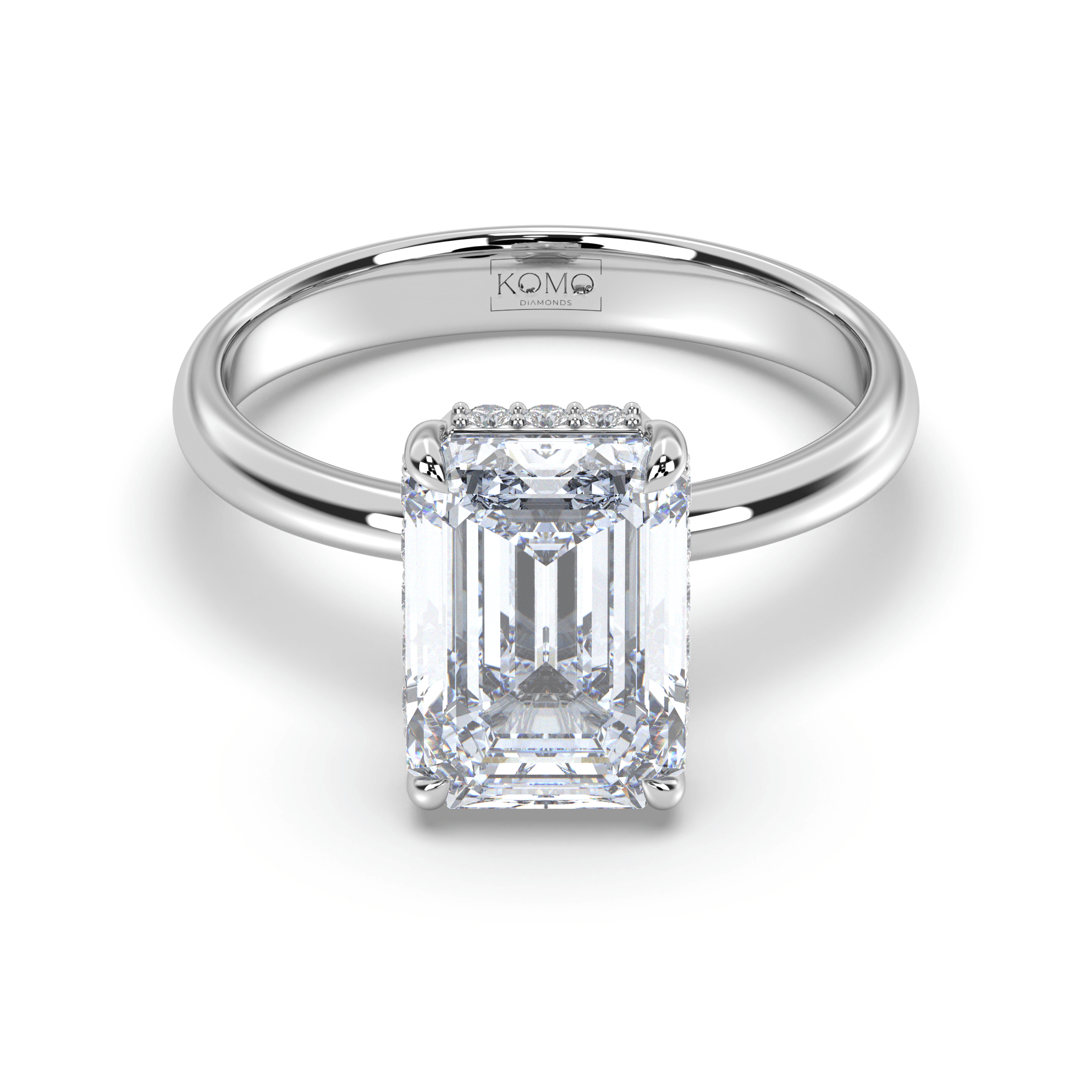 Greta Lab Grown Diamond Engagement Ring with Emerald-Cut Hidden Halo