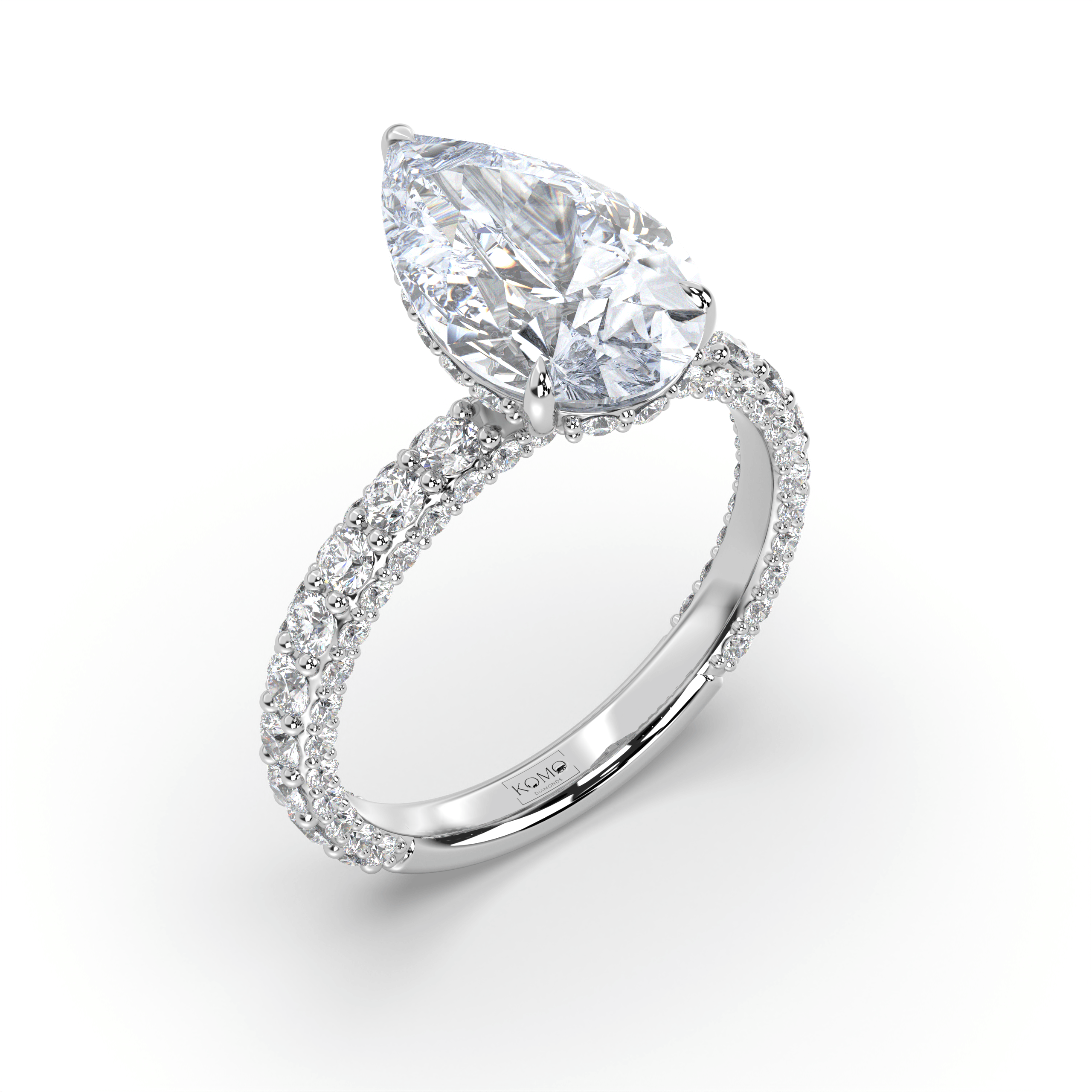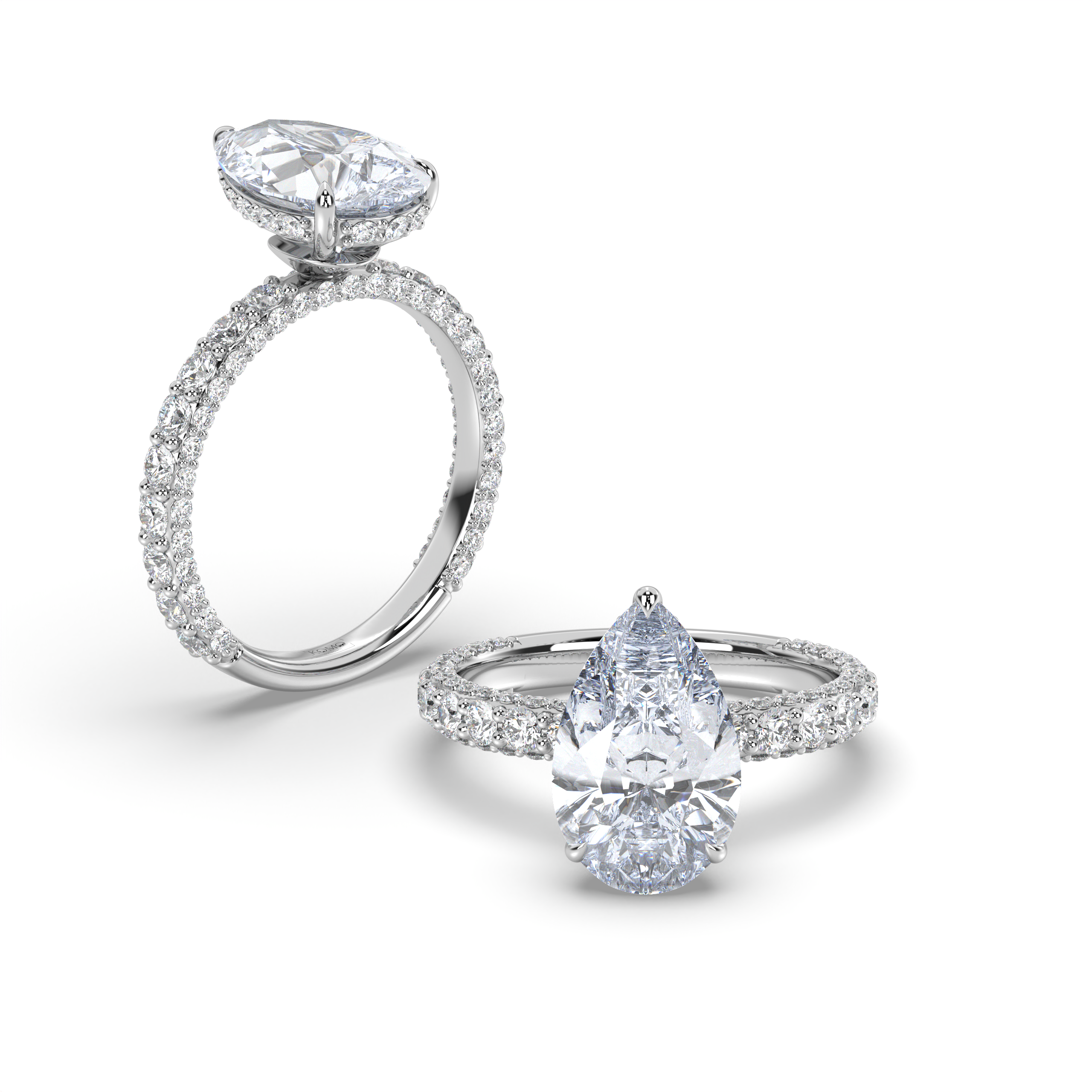 Experience distinctive elegance where pear-cut brilliance meets pavé sophistication in a symbol of unique and sustainable love.