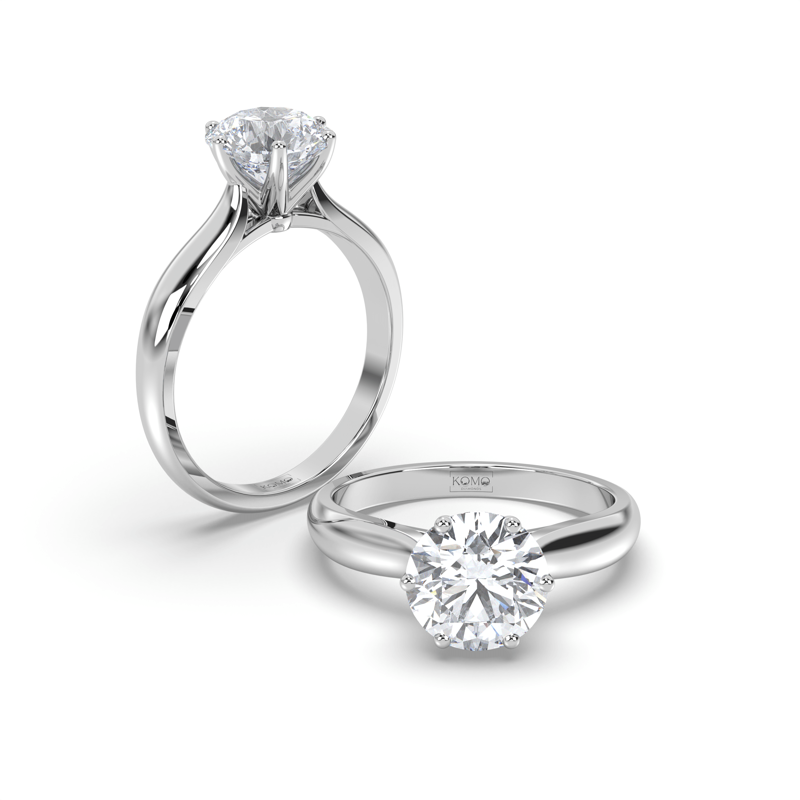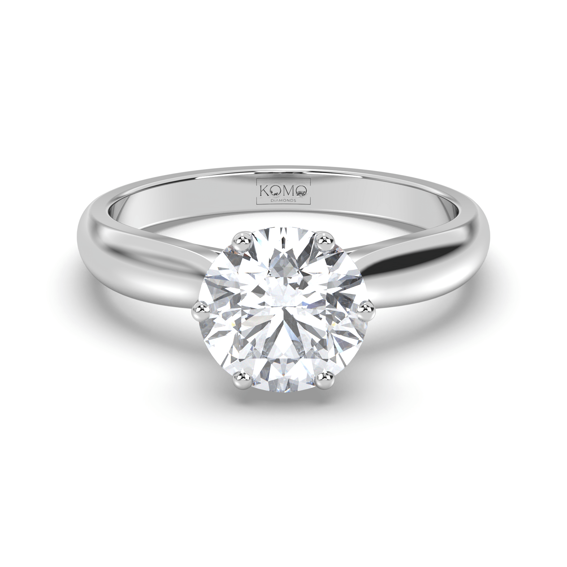 The Grace engagement ring embodies pure sophistication with its classic solitaire design from our Muse collection. This exquisite round brilliant-cut diamond ring showcases your choice of 1.00-4.00 carat lab-grown diamond in a graceful six-prong setting that maximizes light reflection and brilliance. The sleek band curves gently, creating feminine comfort perfect for everyday wear.