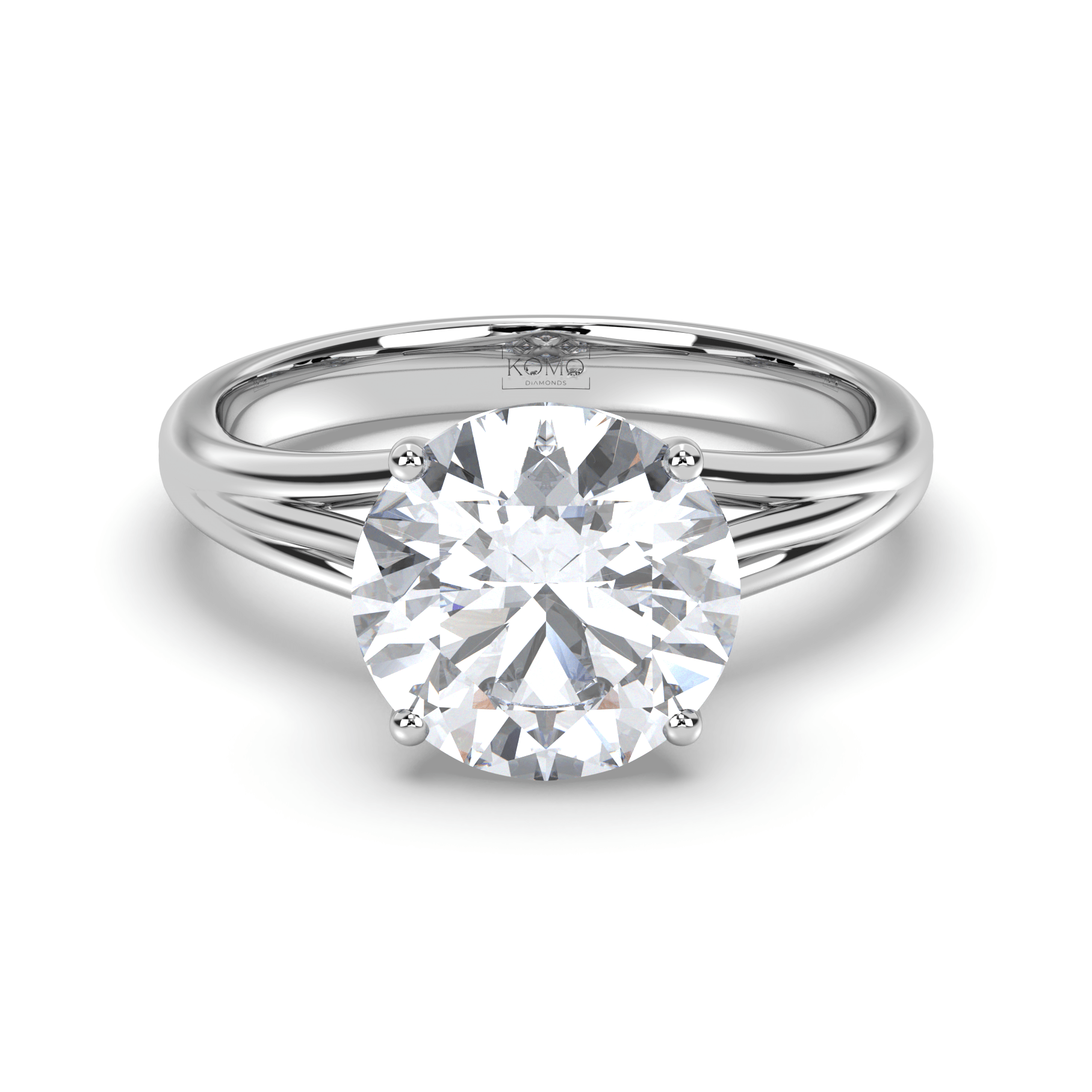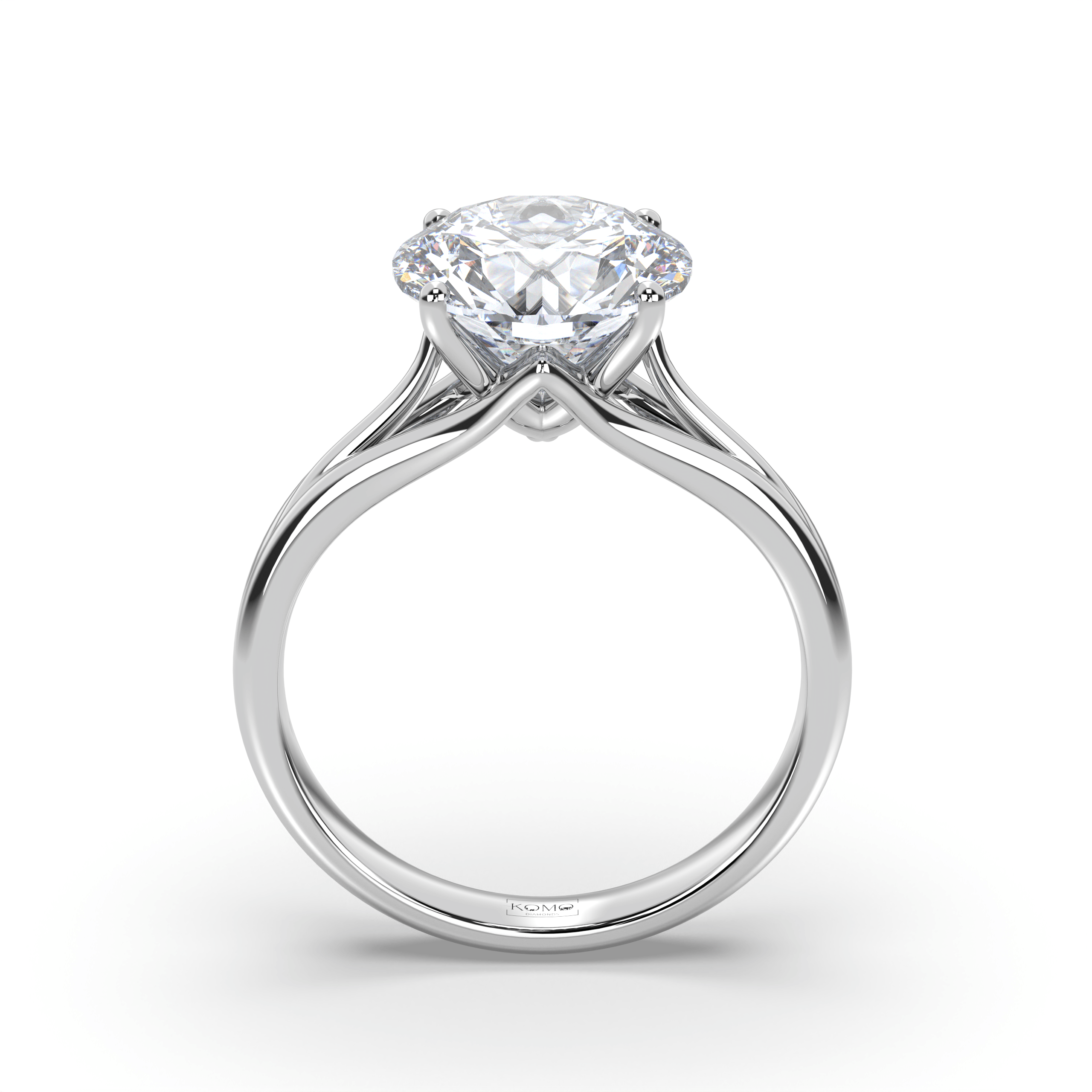 Meet the Delphine, where poetry becomes wearable art. This exquisite round brilliant-cut diamond ring from our Muse collection captures romantic elegance with flowing cathedral curves that embrace your choice of 2.00-7.00 carat lab-grown diamond. The sculptured band rises gracefully, creating comfortable wear while maintaining an undeniably feminine profile.