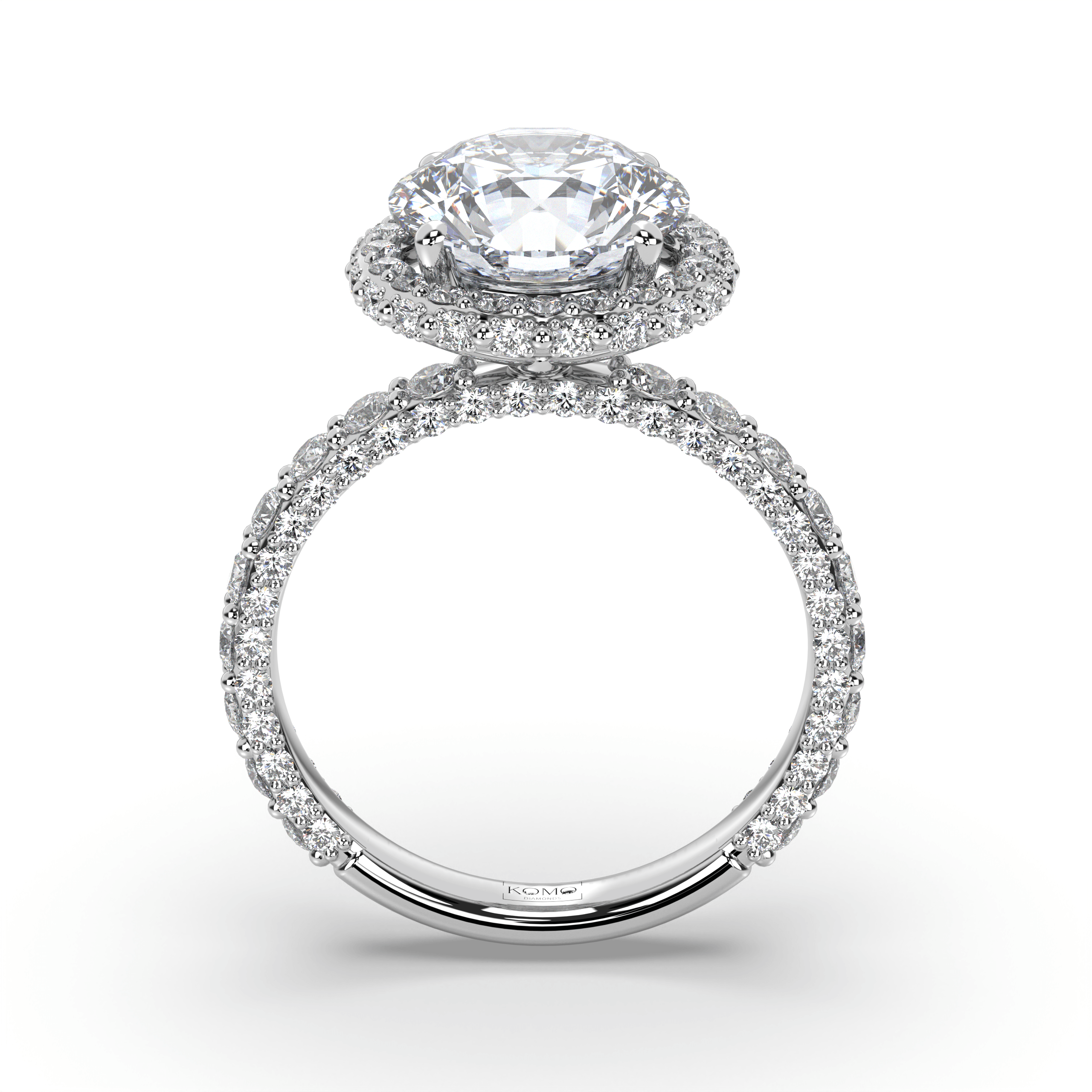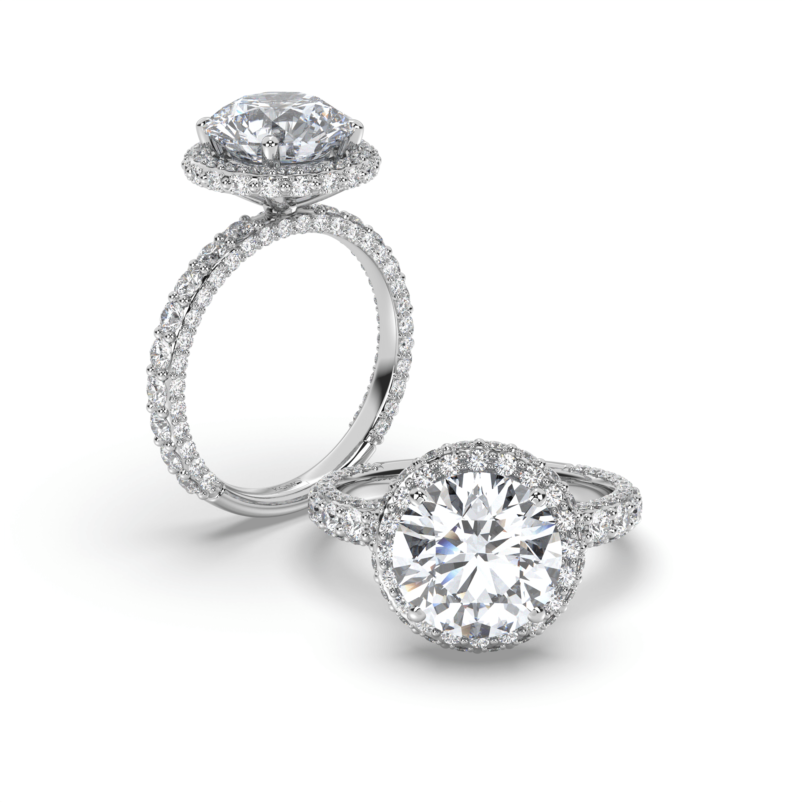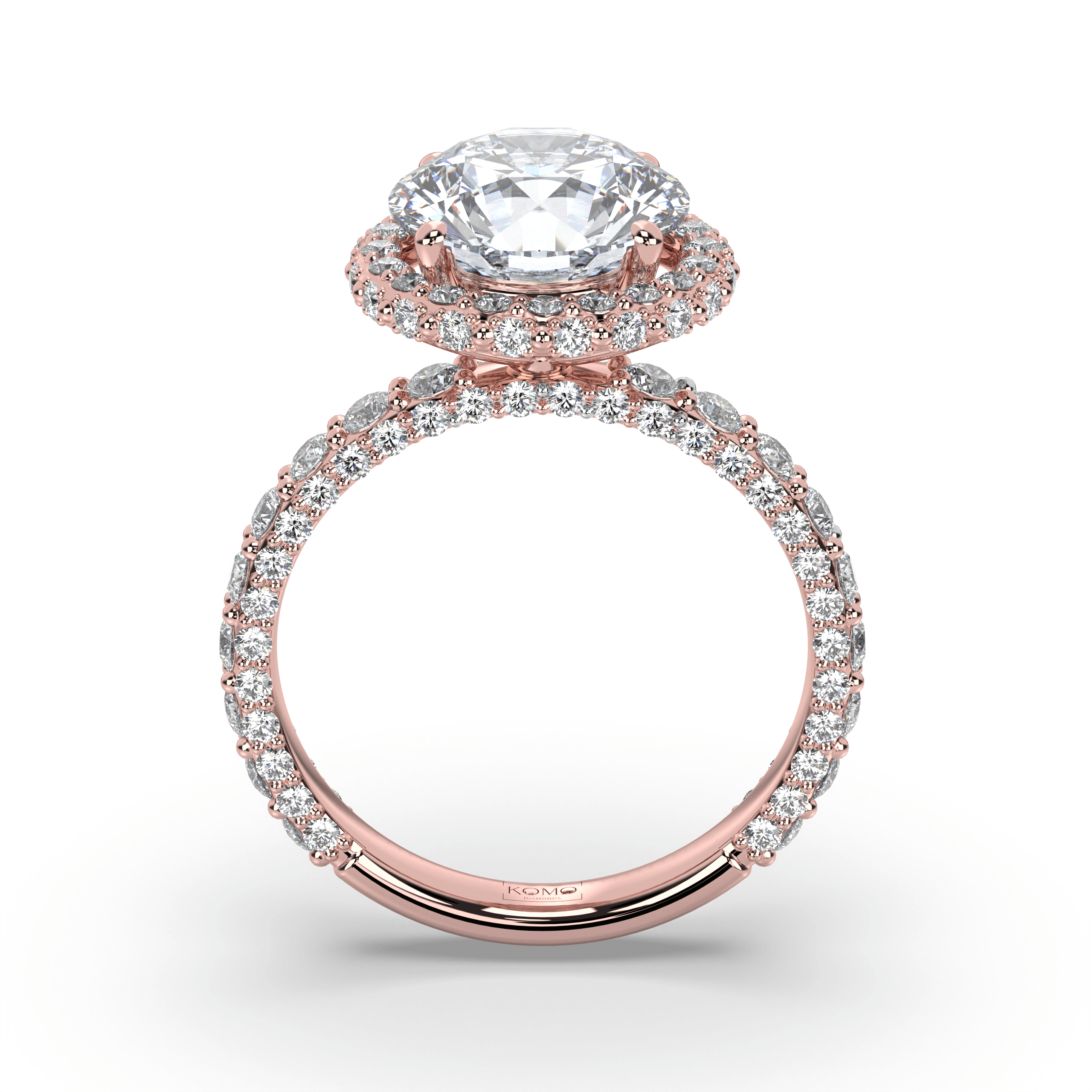 Experience celestial magnificence where round brilliant perfection meets luminous halo enhancement in a weightless symbol of sustainable love that radiates eternal brilliance.