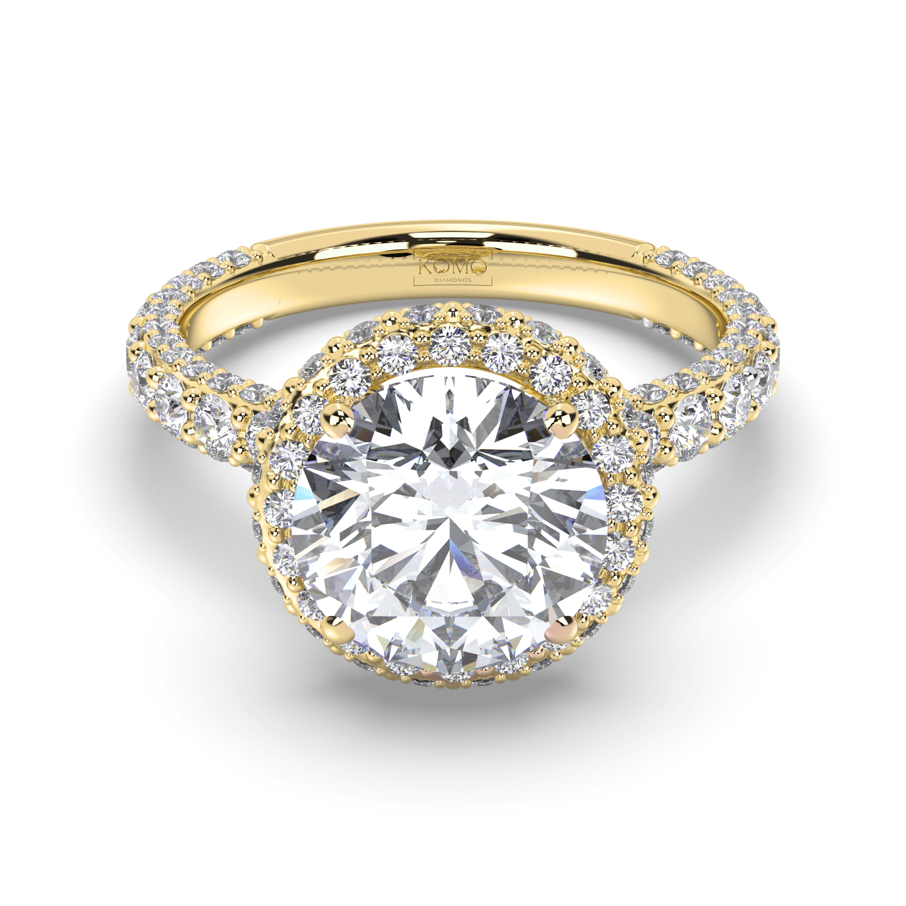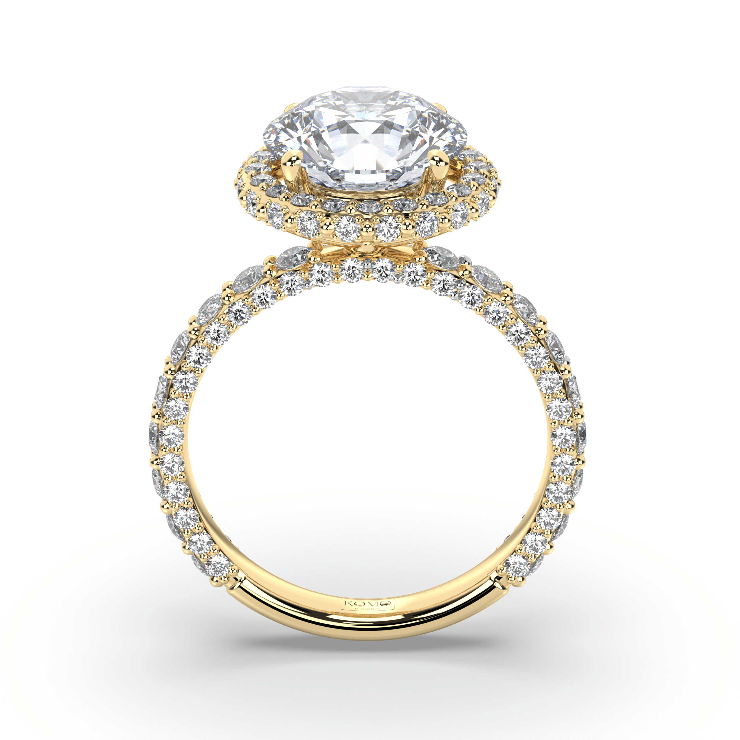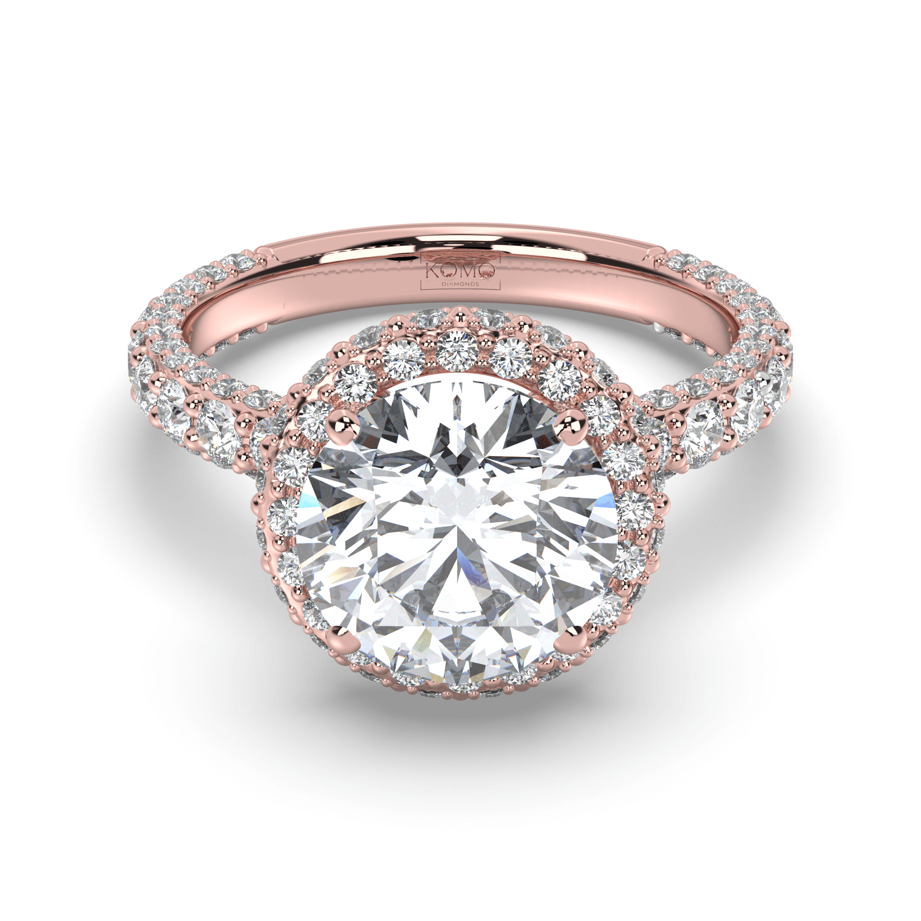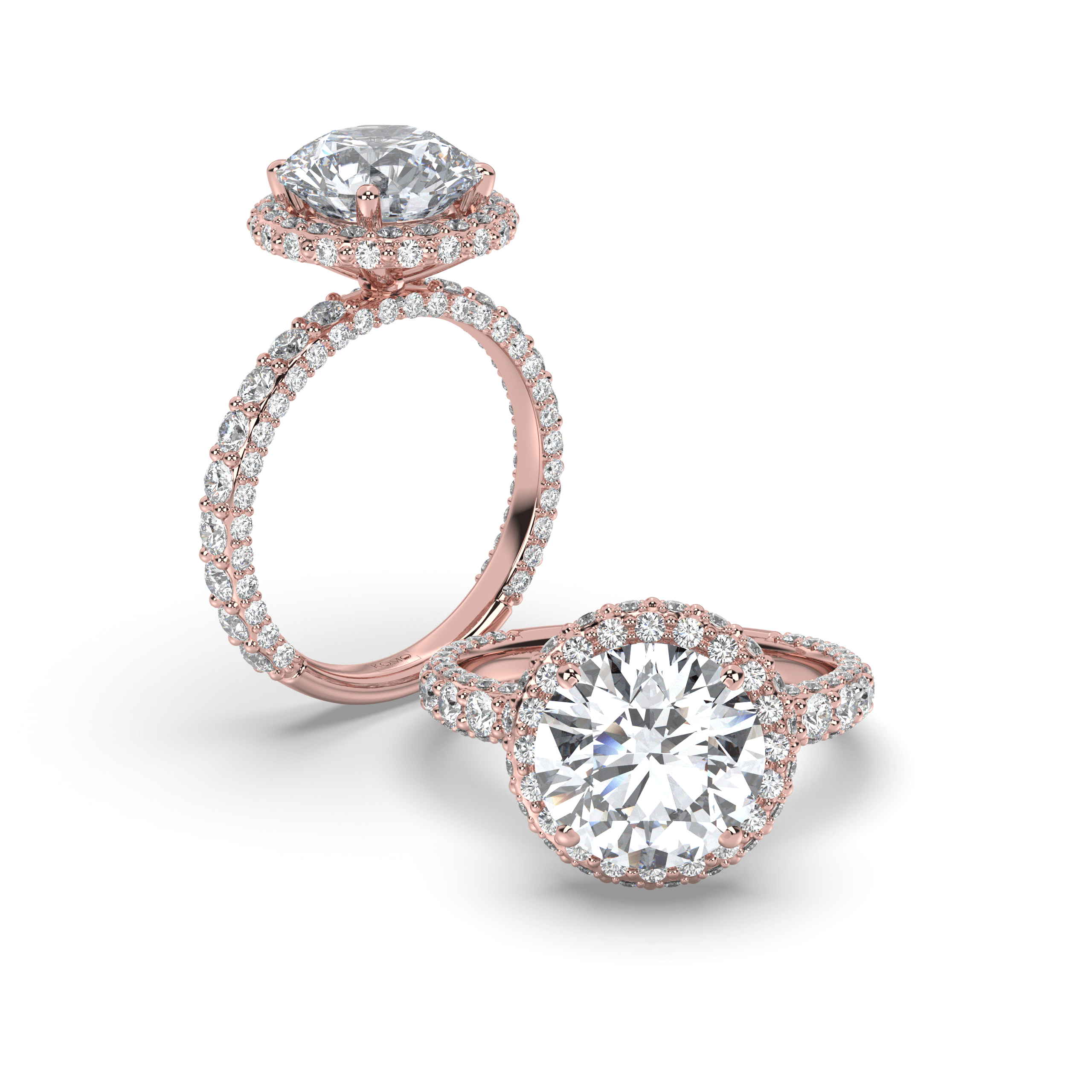 Experience celestial magnificence where round brilliant perfection meets luminous halo enhancement in a weightless symbol of sustainable love that radiates eternal brilliance.