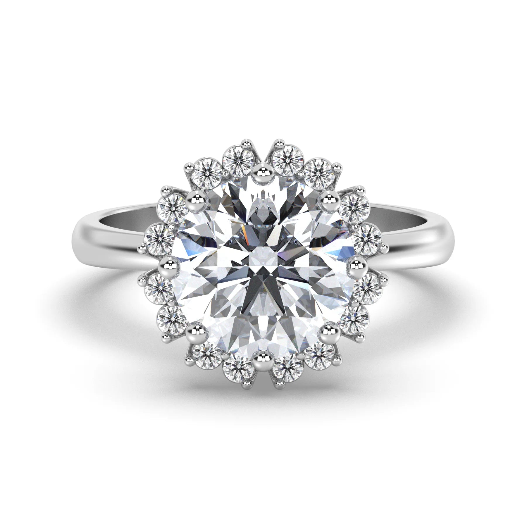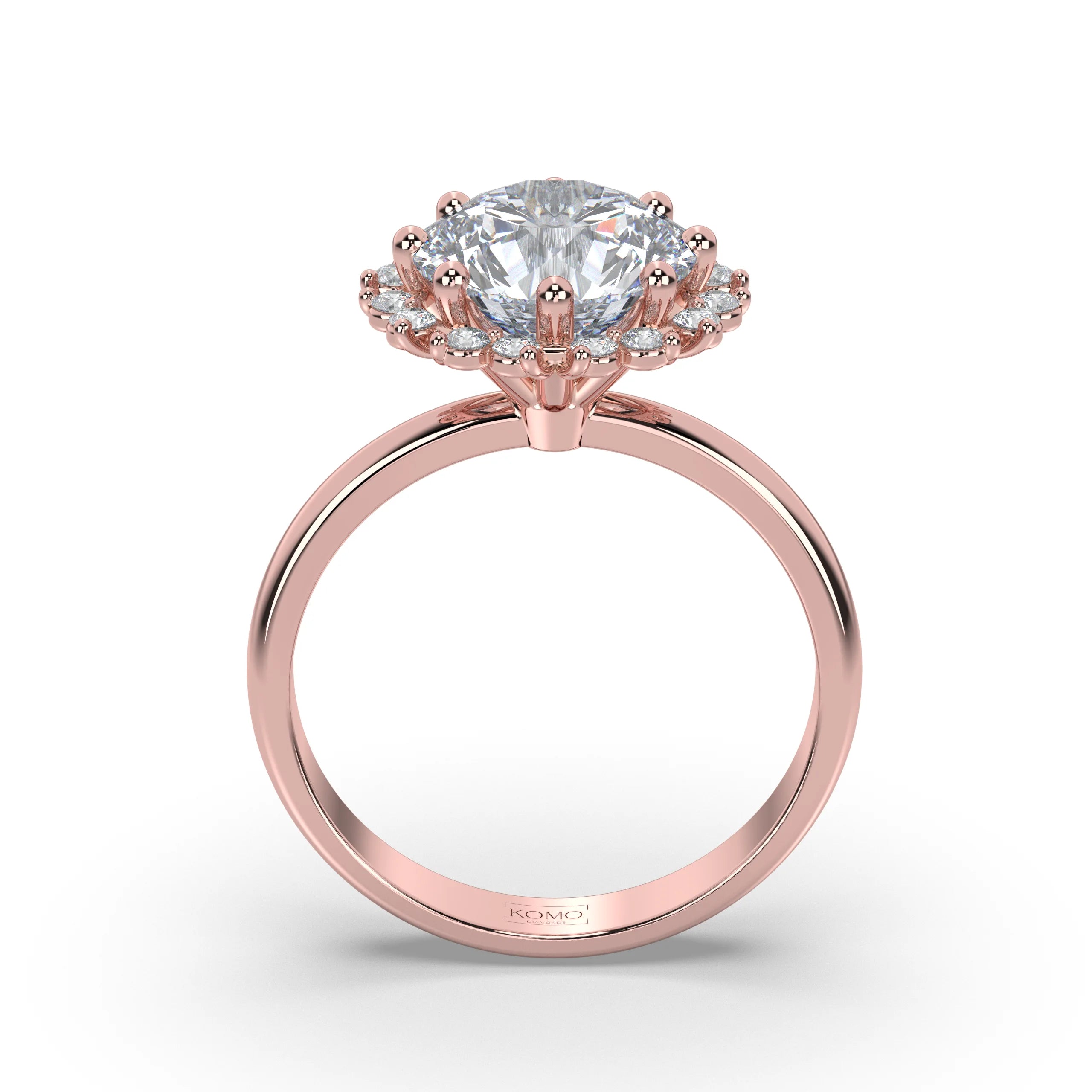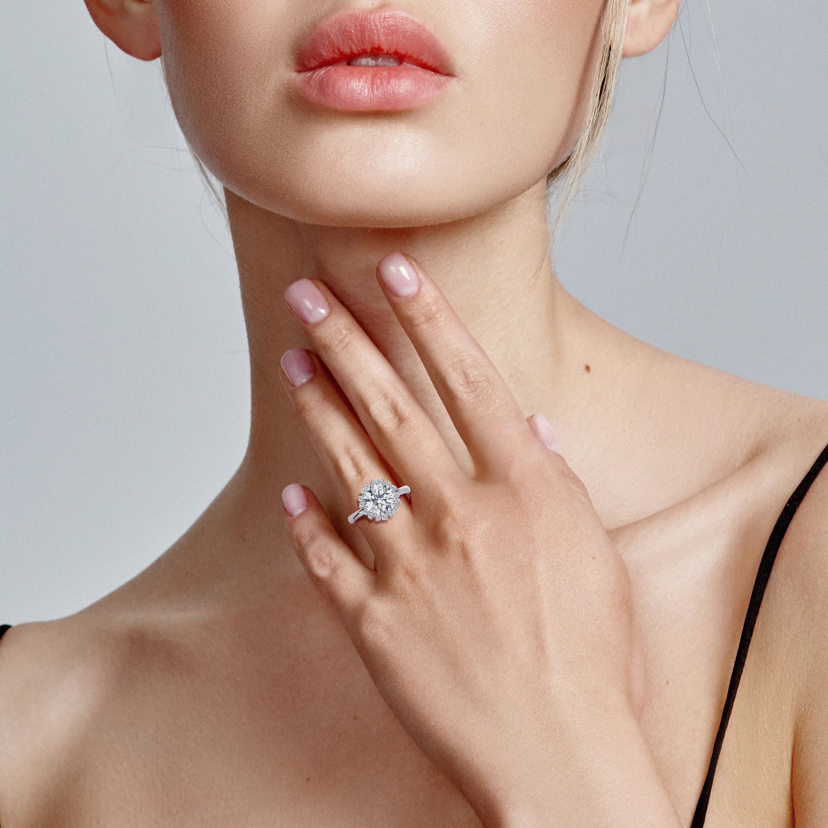 • Luminous Halo: Delicate surrounding diamonds create a soft corona that enhances the center stone's natural glow