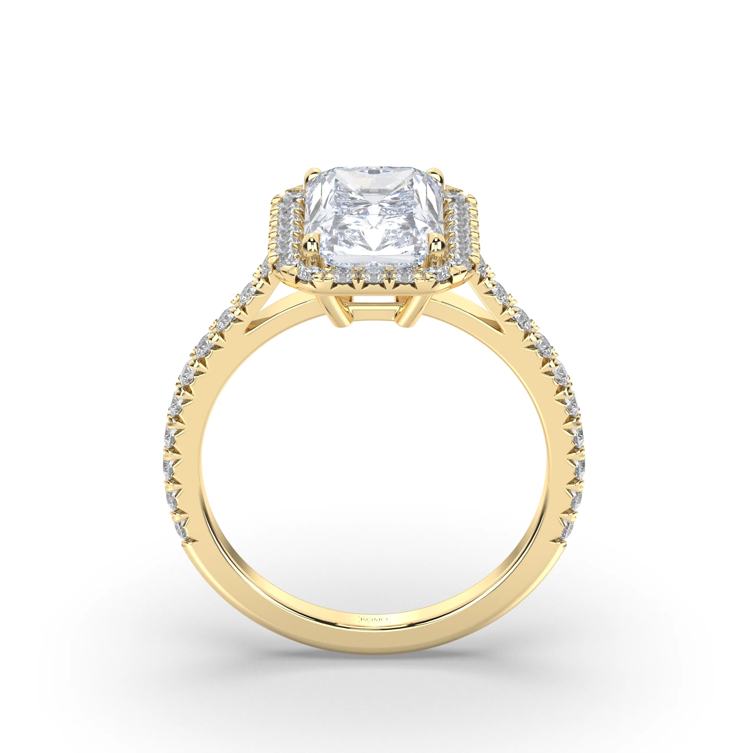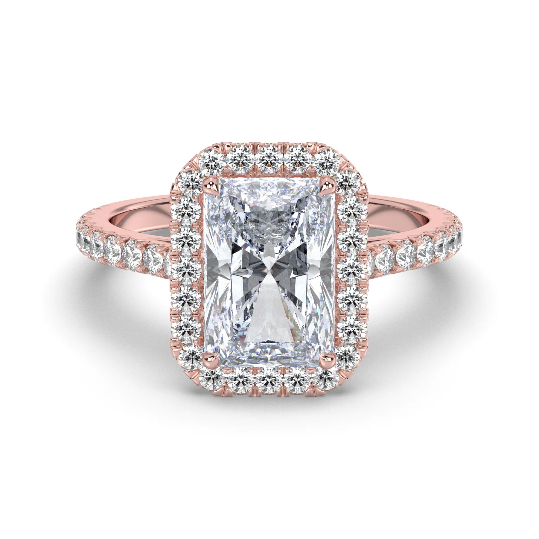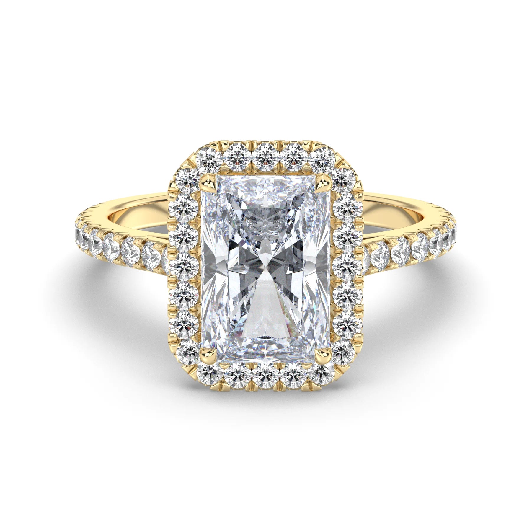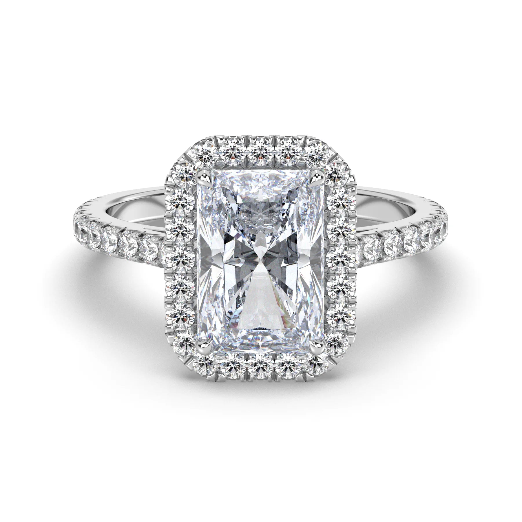 Aurelia Radiant-Cut Diamond Ring: Geometric Brilliance with Deco-Inspired Halo