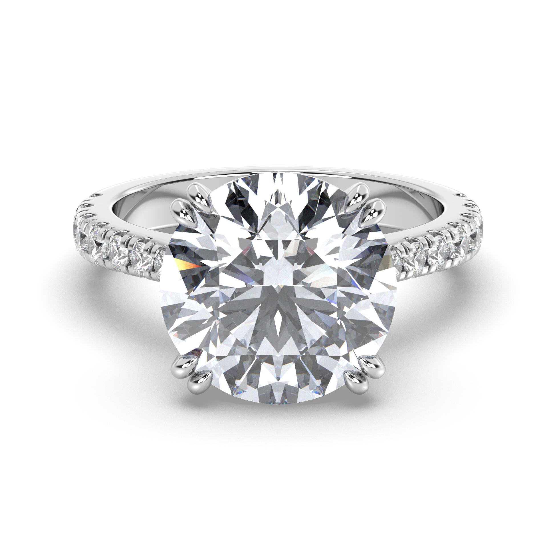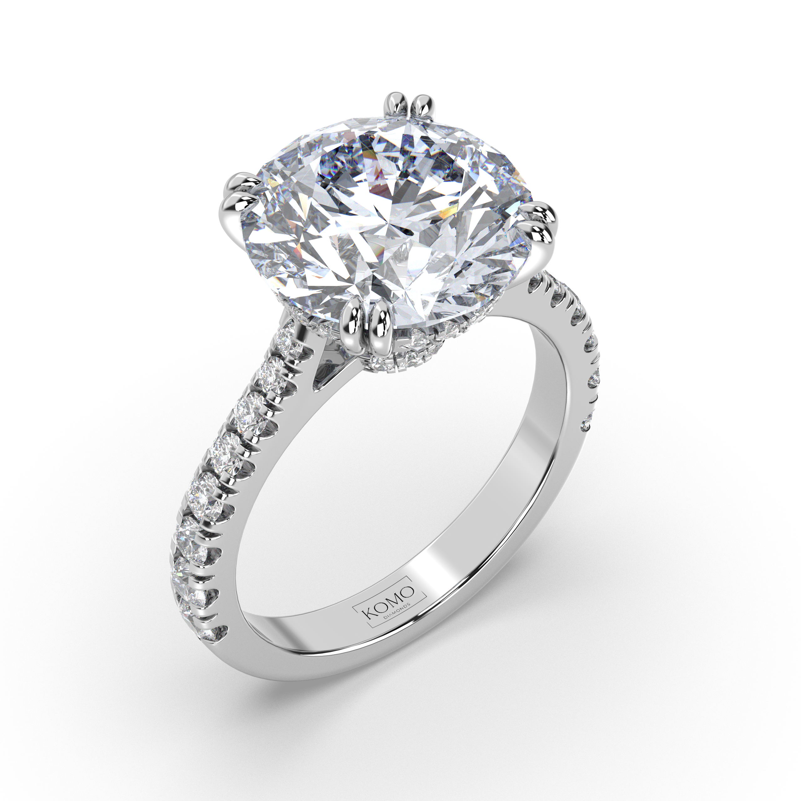 Meet Estelle, where extraordinary size meets ethereal beauty in a breathtaking celebration of celestial grandeur. This magnificent round brilliant diamond engagement ring from our Celestial collection captures the essence of a brilliant star with its exceptional center stone and delicate hidden halo, designed for the woman who appreciates dramatic elegance with weightless sophistication.