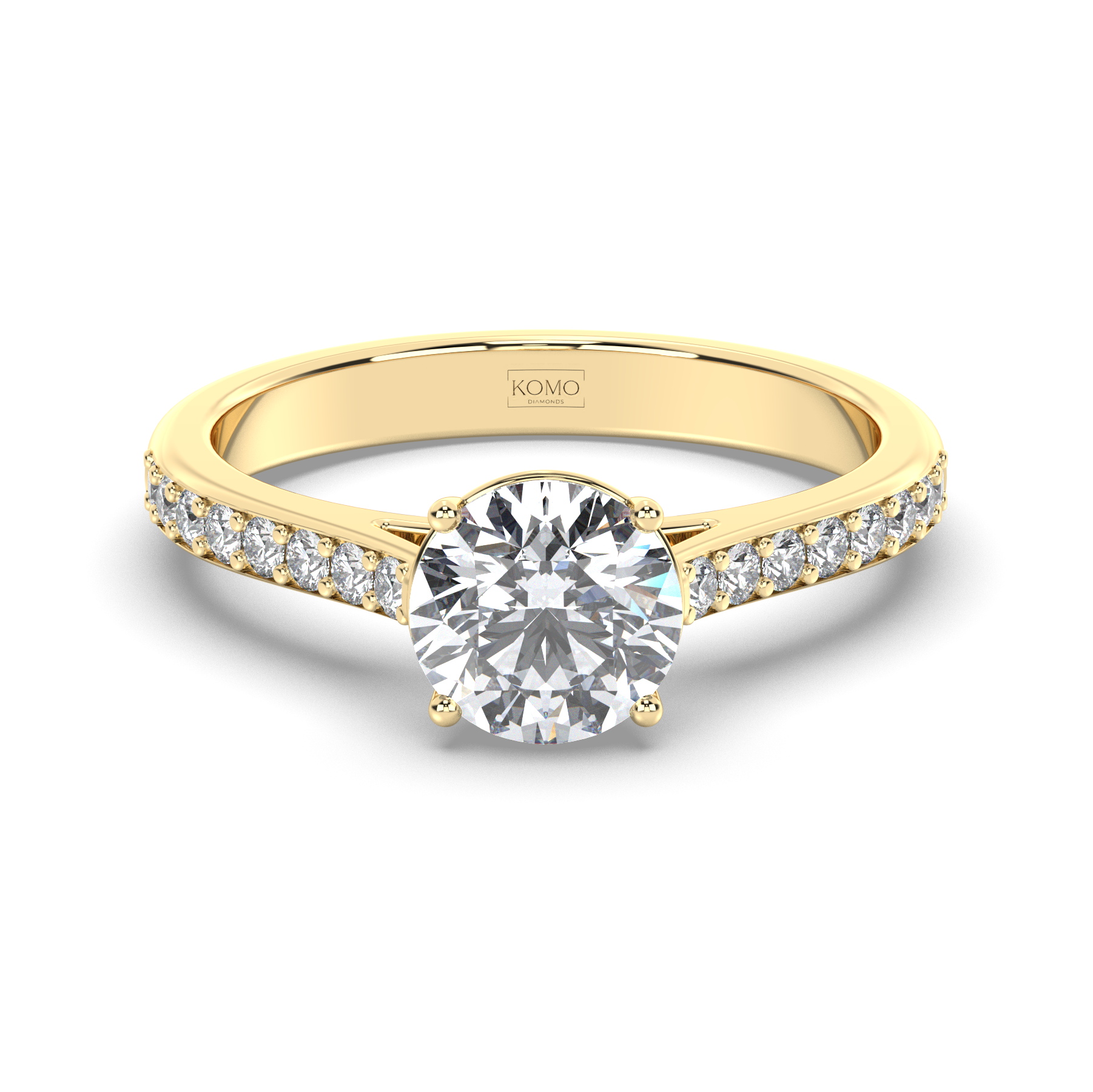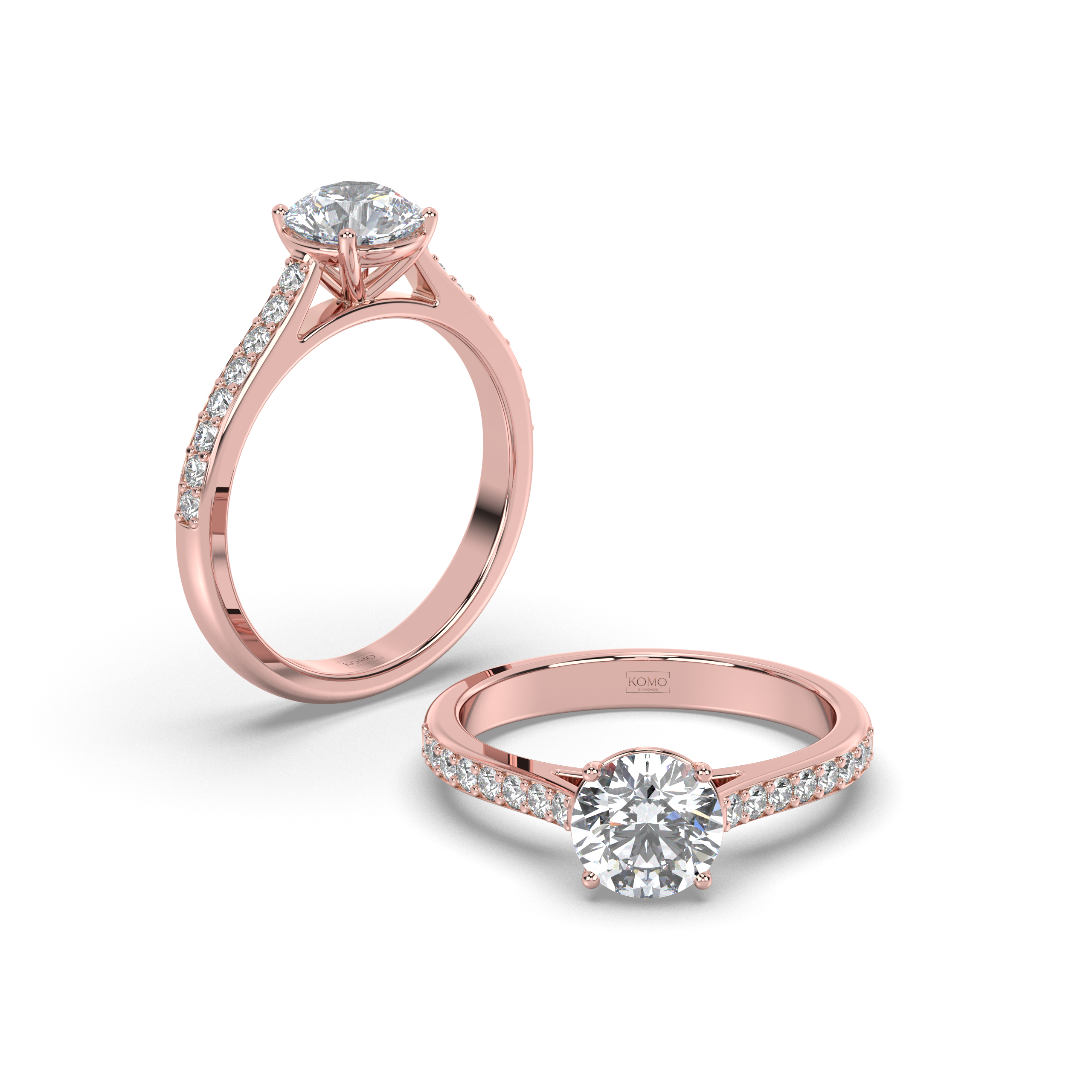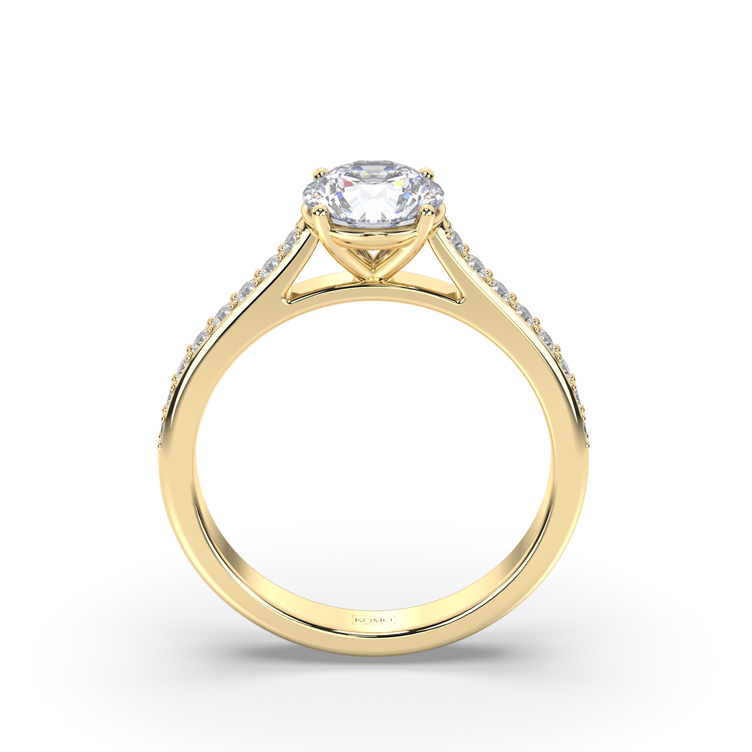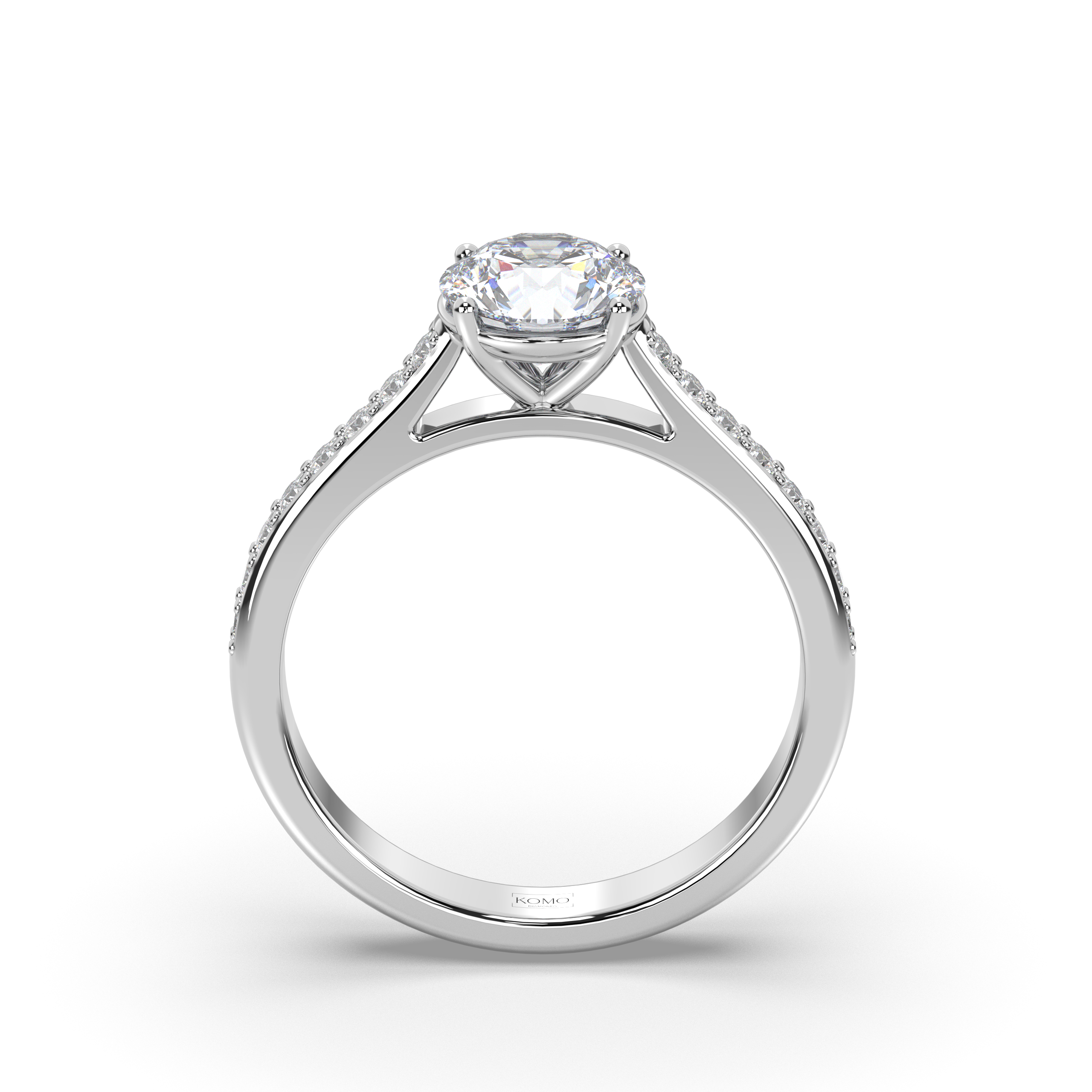- Cathedral Elegance: Elevated setting showcases the round brilliant with architectural grace and maximum light exposure