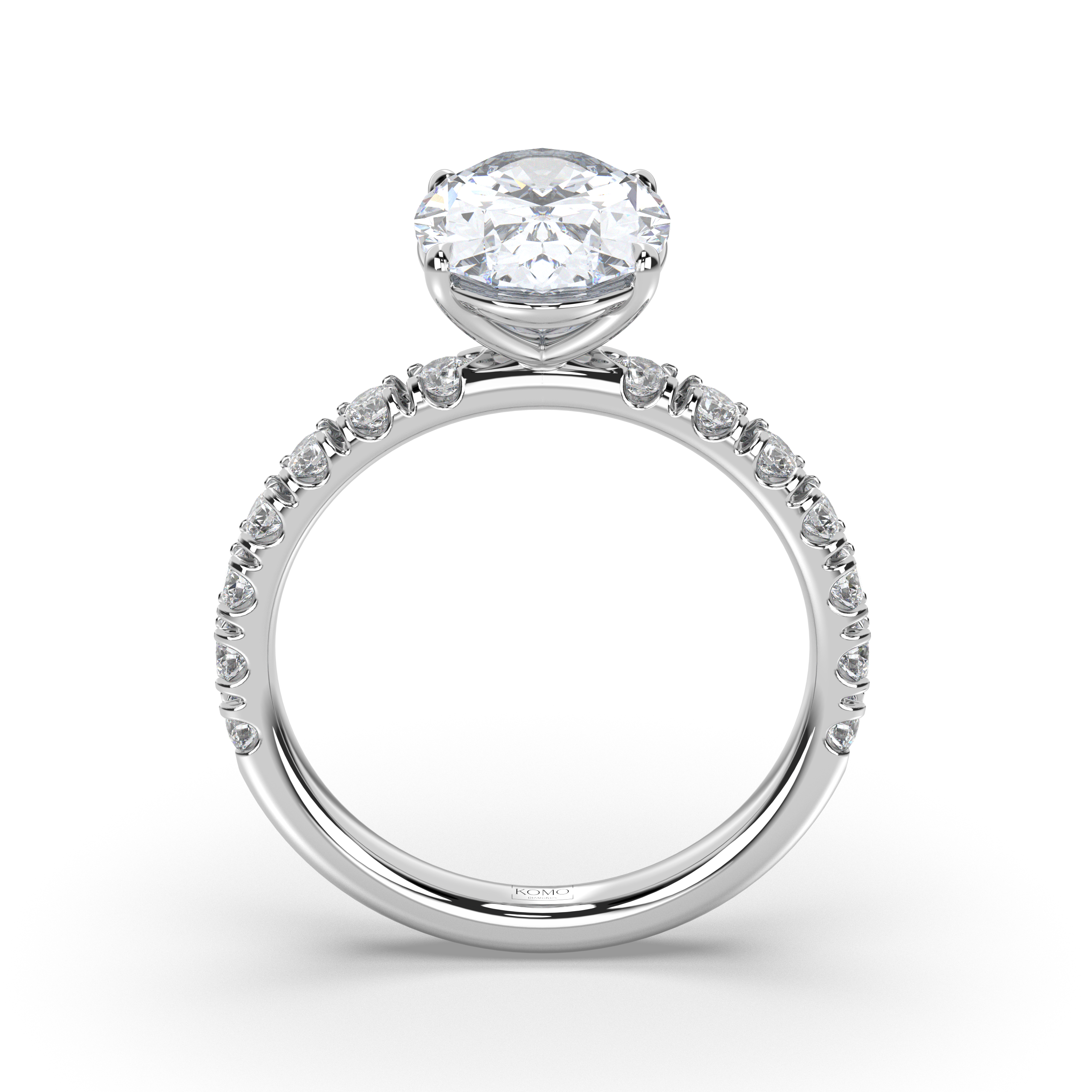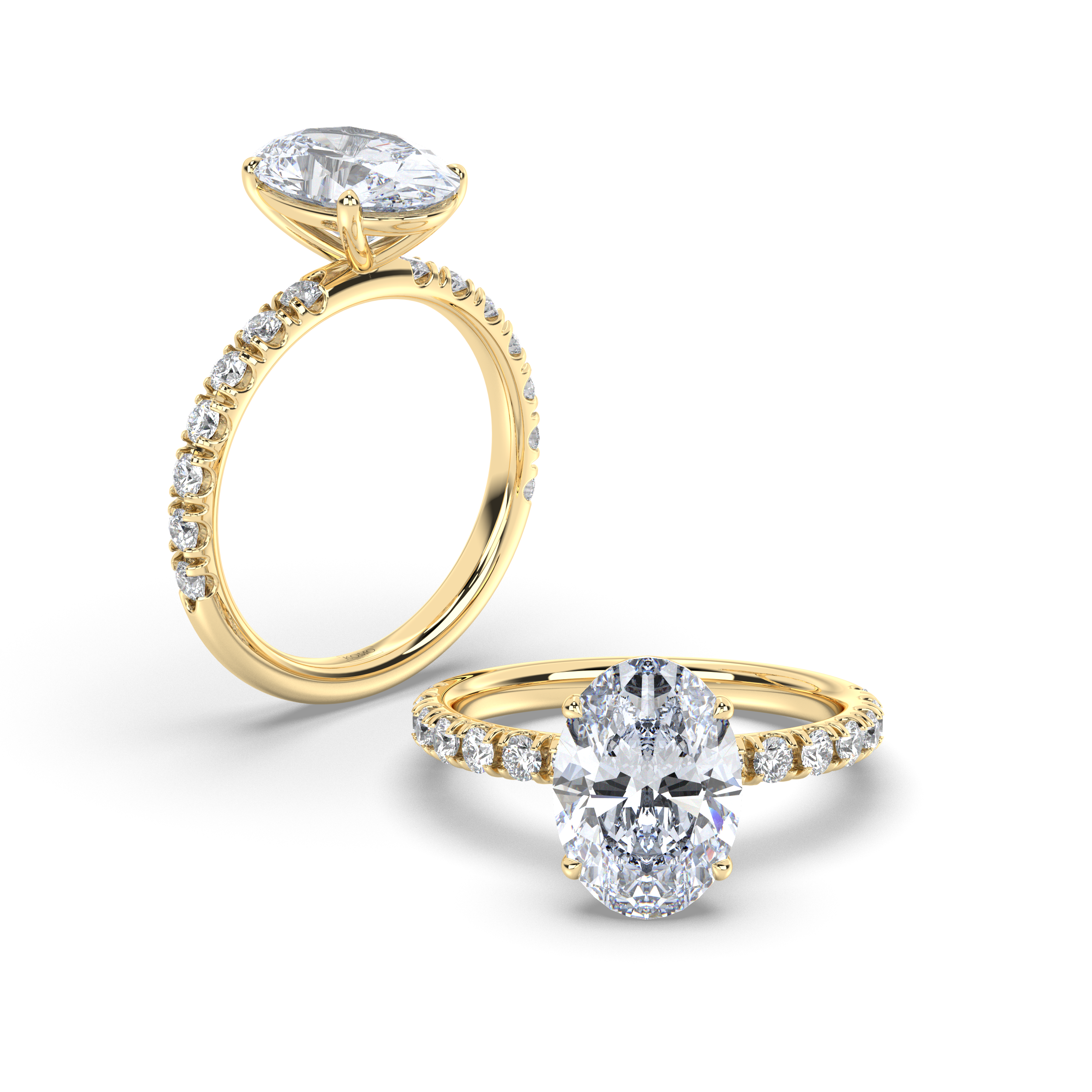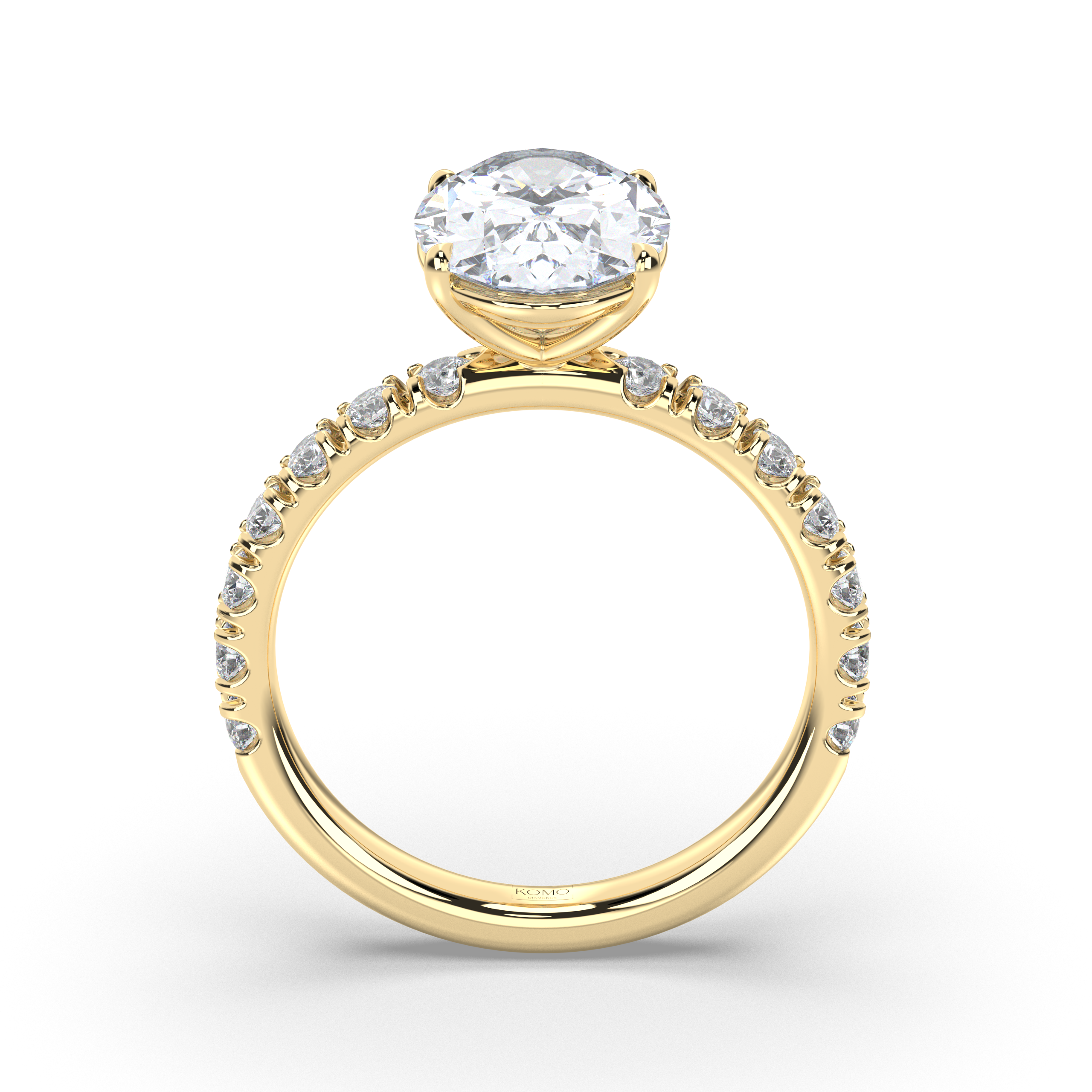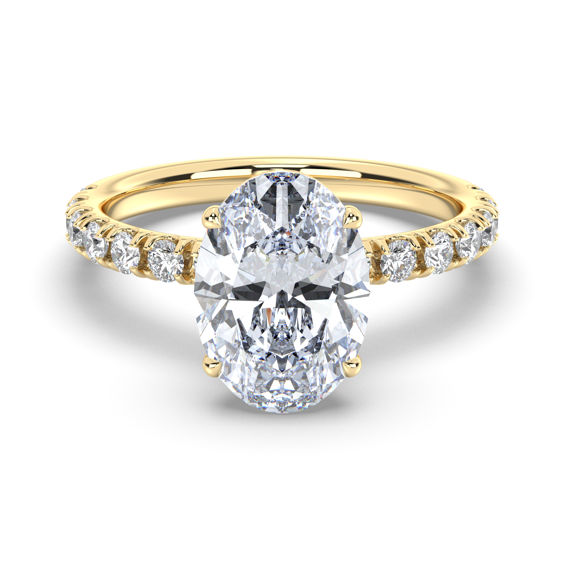 Meet Camille, where graceful curves meet radiant sophistication in a breathtaking celebration of celestial light. This exquisite oval diamond engagement ring from our Celestial collection captures the essence of solar brilliance with its elongated center stone and sparkling pavé band, designed for the woman who appreciates effortless elegance and continuous luminous beauty.