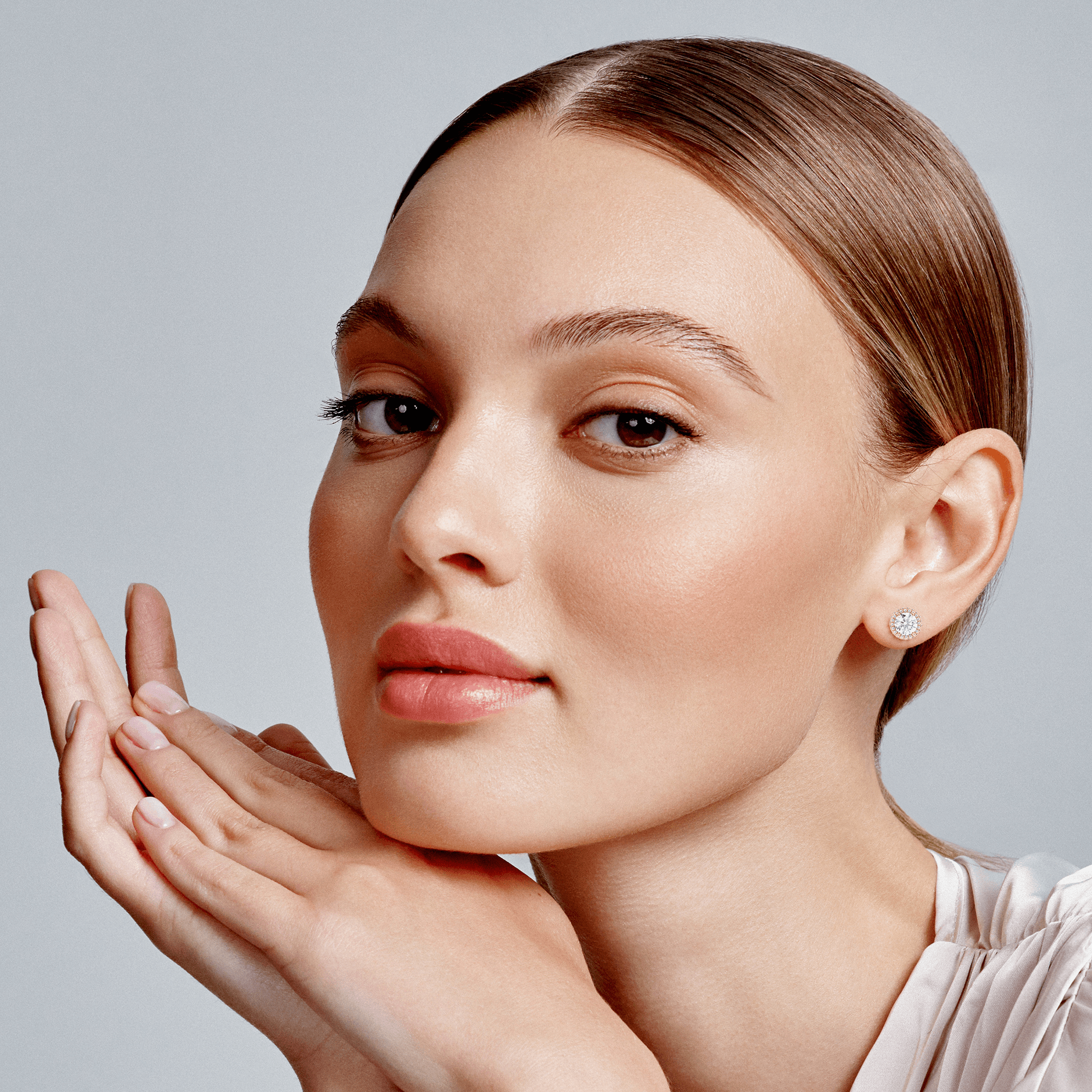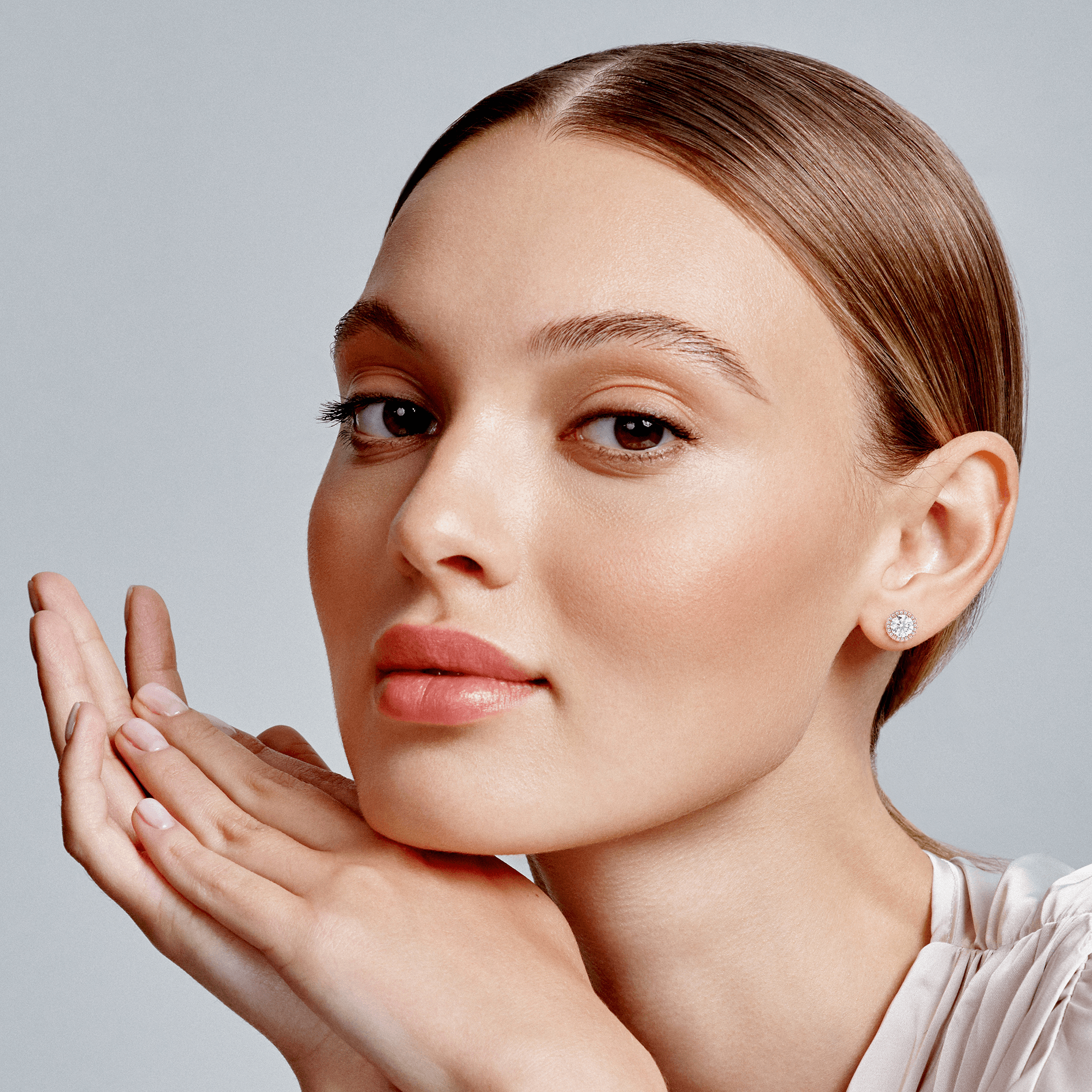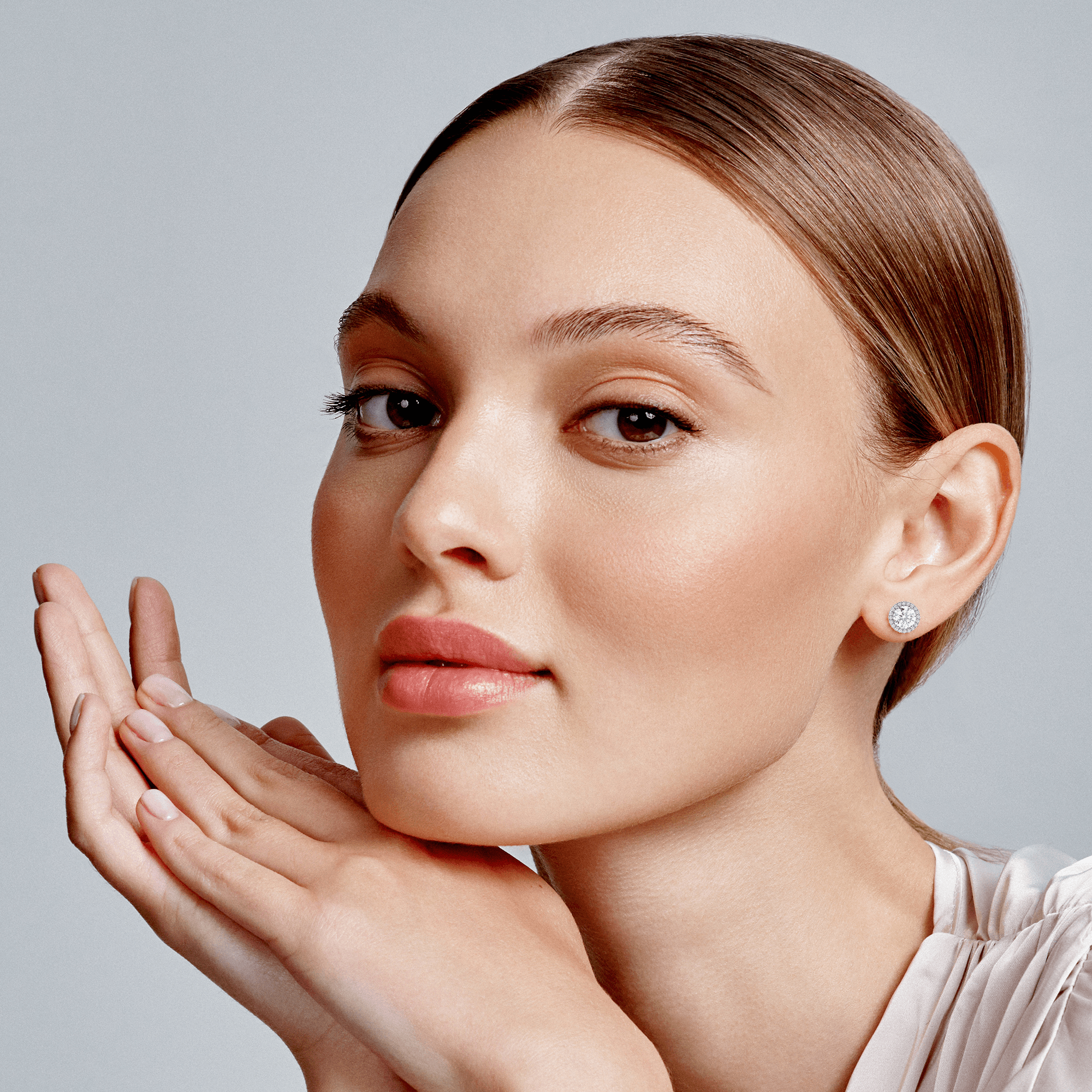 The Odette earrings showcase the architectural sophistication of the Deco Atelier collection, featuring round brilliant lab grown diamonds encircled by precisely calibrated halos. These structured earrings deliver geometric elegance through clean lines and symmetrical proportions, creating statement pieces that honor both Art Deco heritage and contemporary luxury.