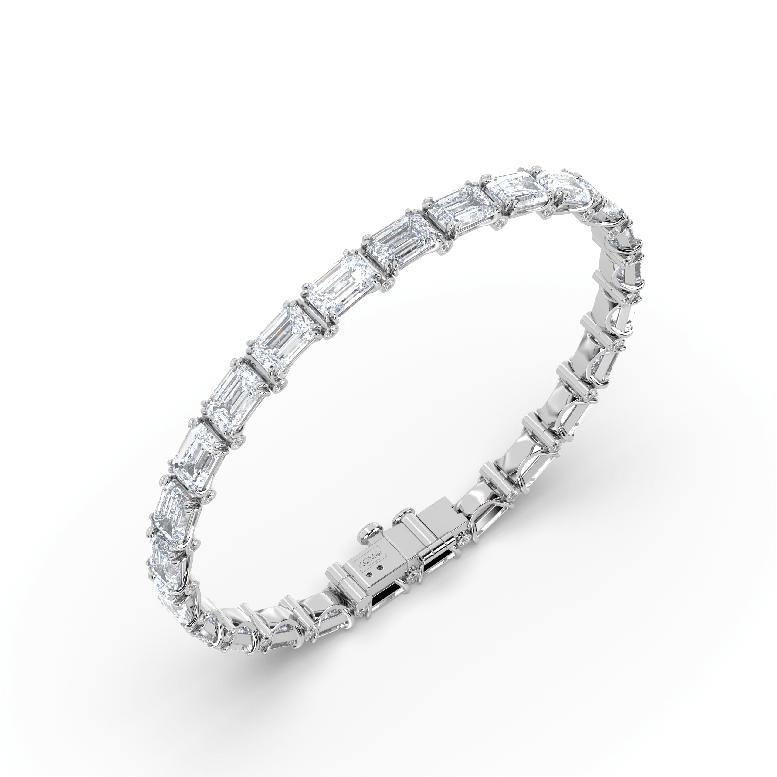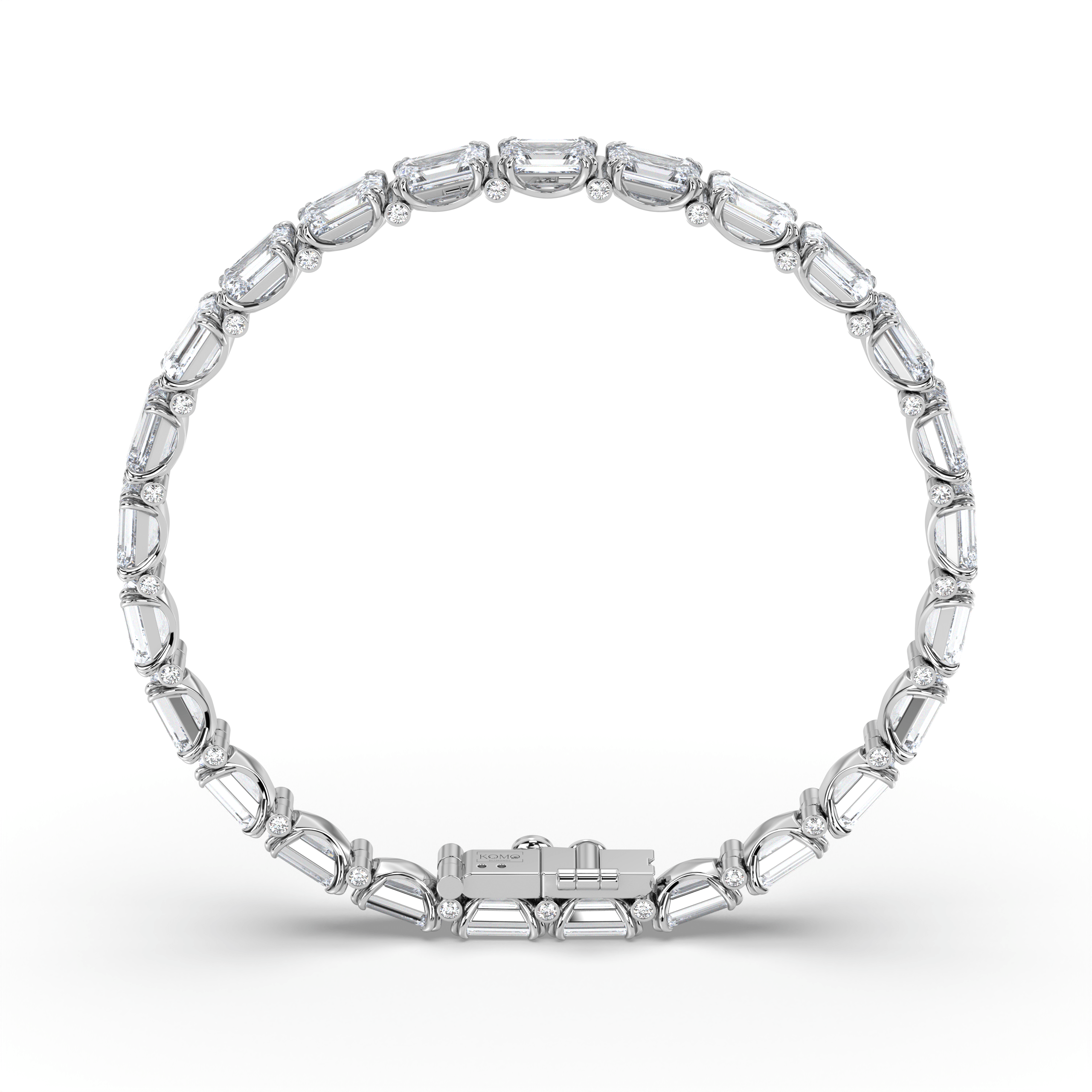 Weighing 11.20-14.80 grams depending on size, this bracelet captures the essence of Art Deco elegance through its clean lines and structured beauty. The emerald-cut diamonds are complemented by precision-set round accent stones, creating the dimensional contrast that defines sophisticated architectural jewelry design with edge-to-edge clarity.