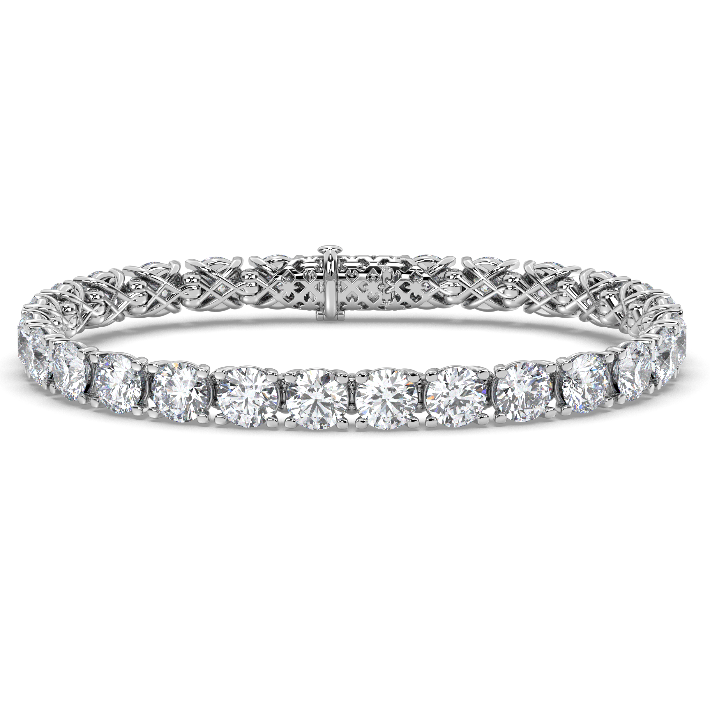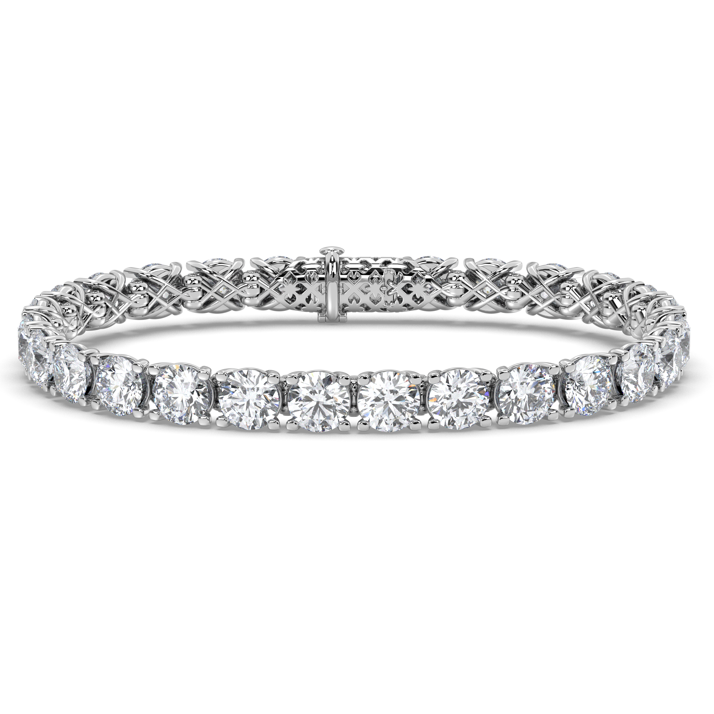 The Spider lab grown diamond tennis bracelet showcases 22.00-30.00 carats of premium round-cut lab-grown diamonds in a continuous line design. Each IGI-certified stone features exceptional G+ color and VS1+ clarity, created using advanced CVD/HPHT technology. Available in sizes 6-8 inches, this substantial bracelet delivers impressive presence while the precision-set diamonds create maximum fire and scintillation throughout.