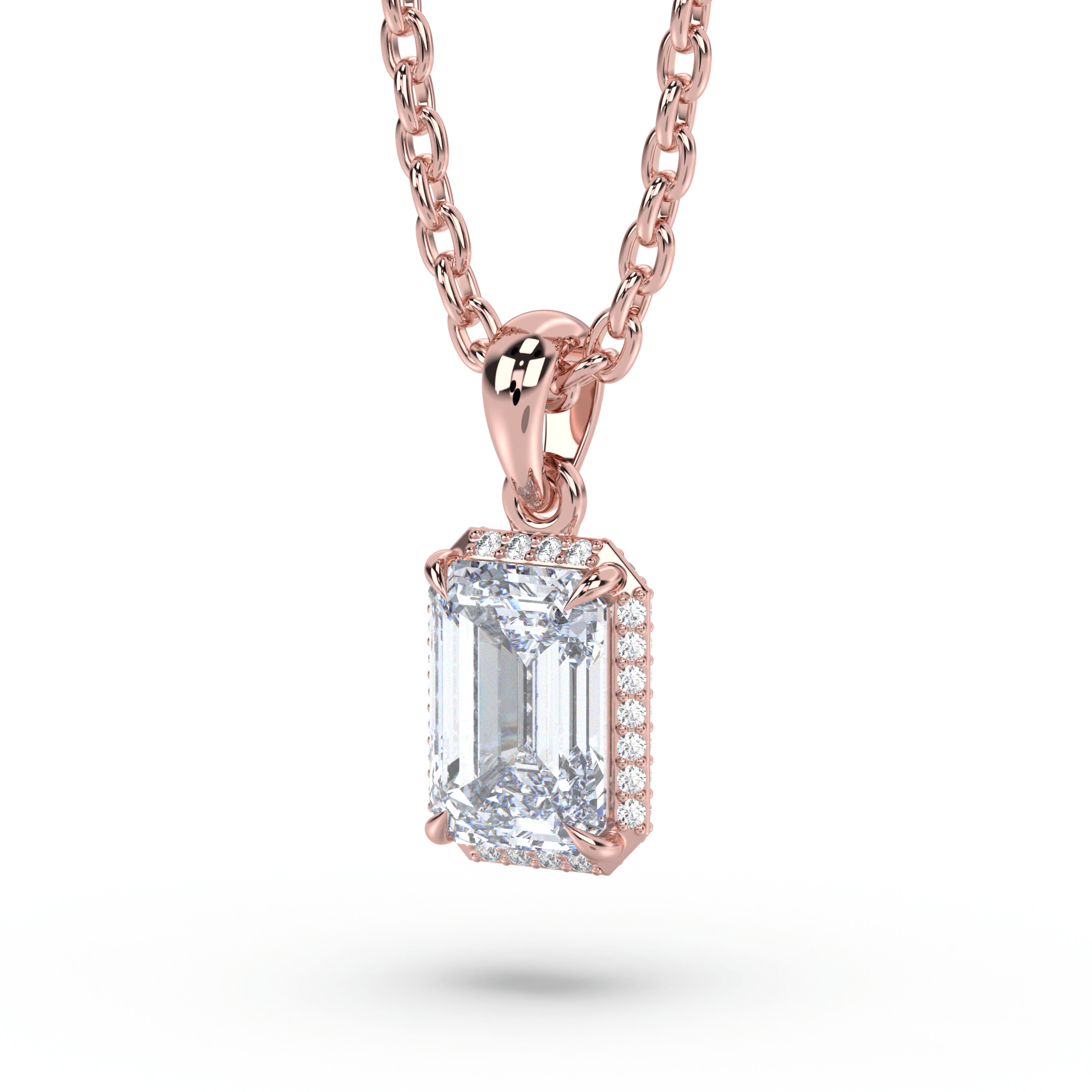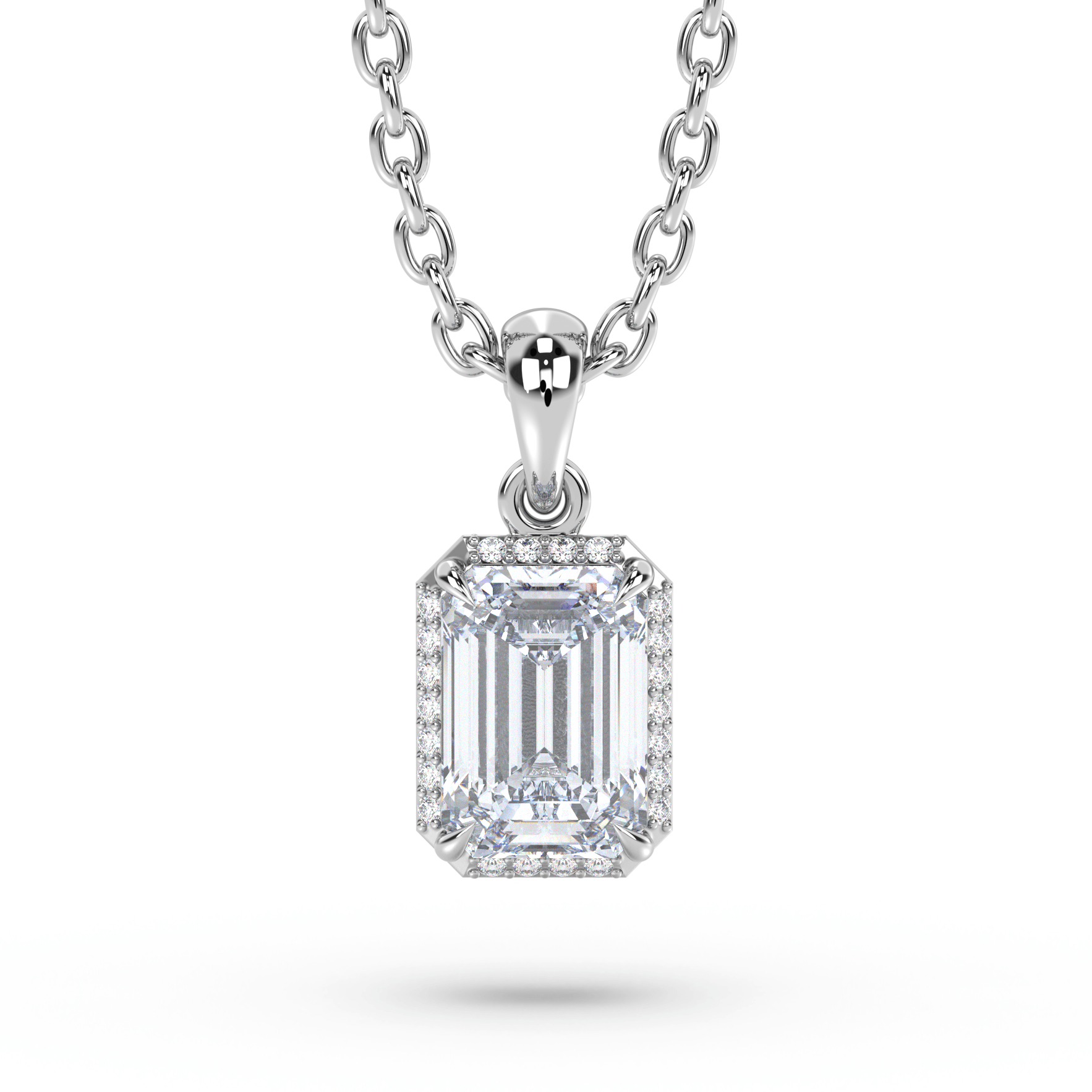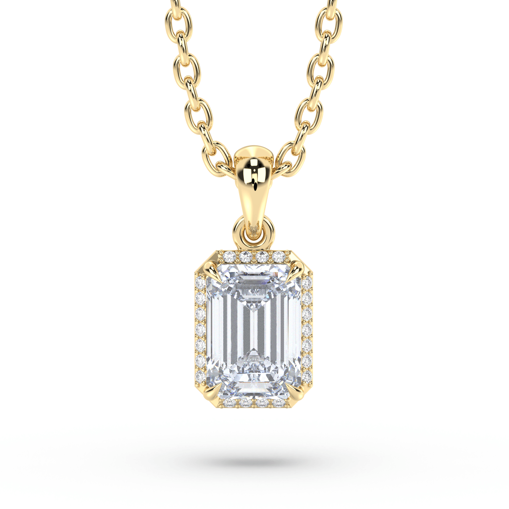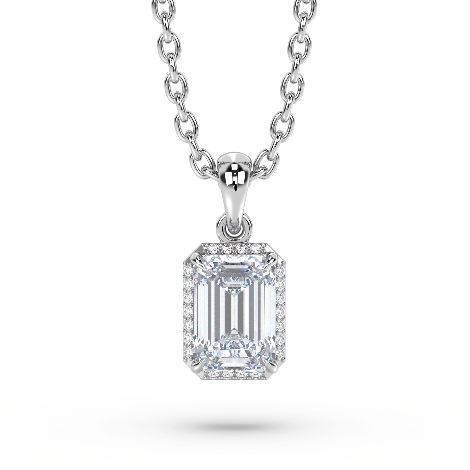 Gatsby Emerald-Cut Lab Grown Diamond Pendant with Halo Frame