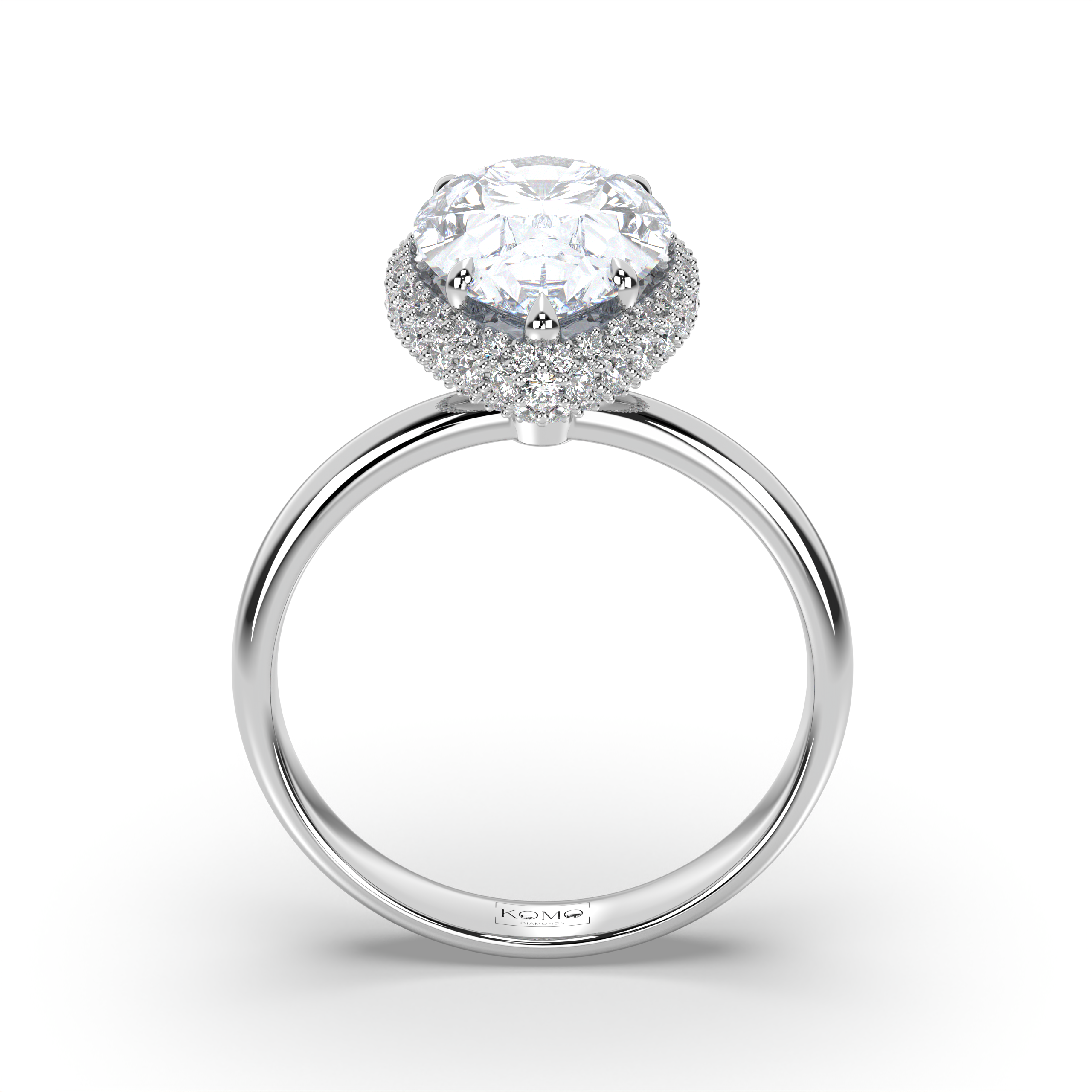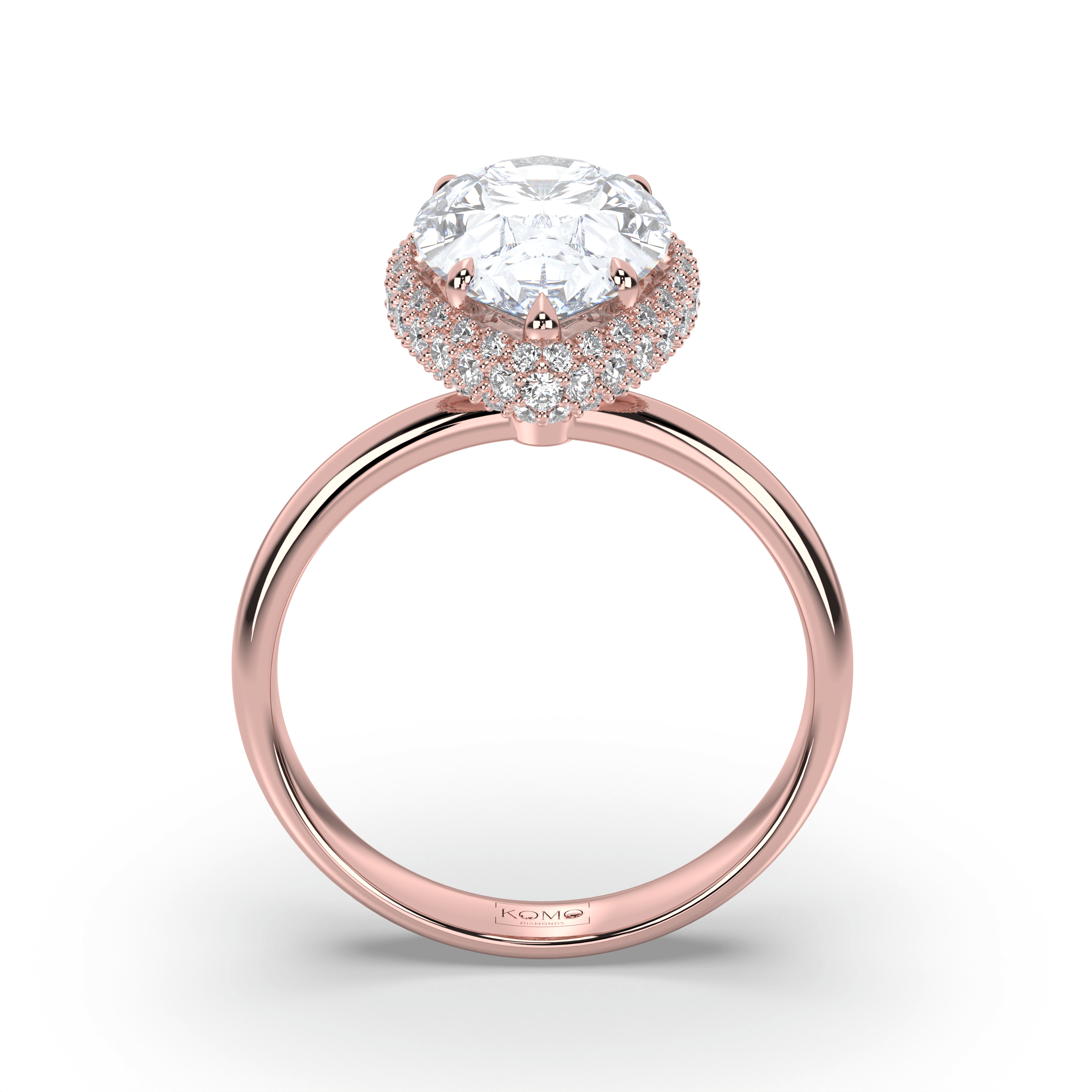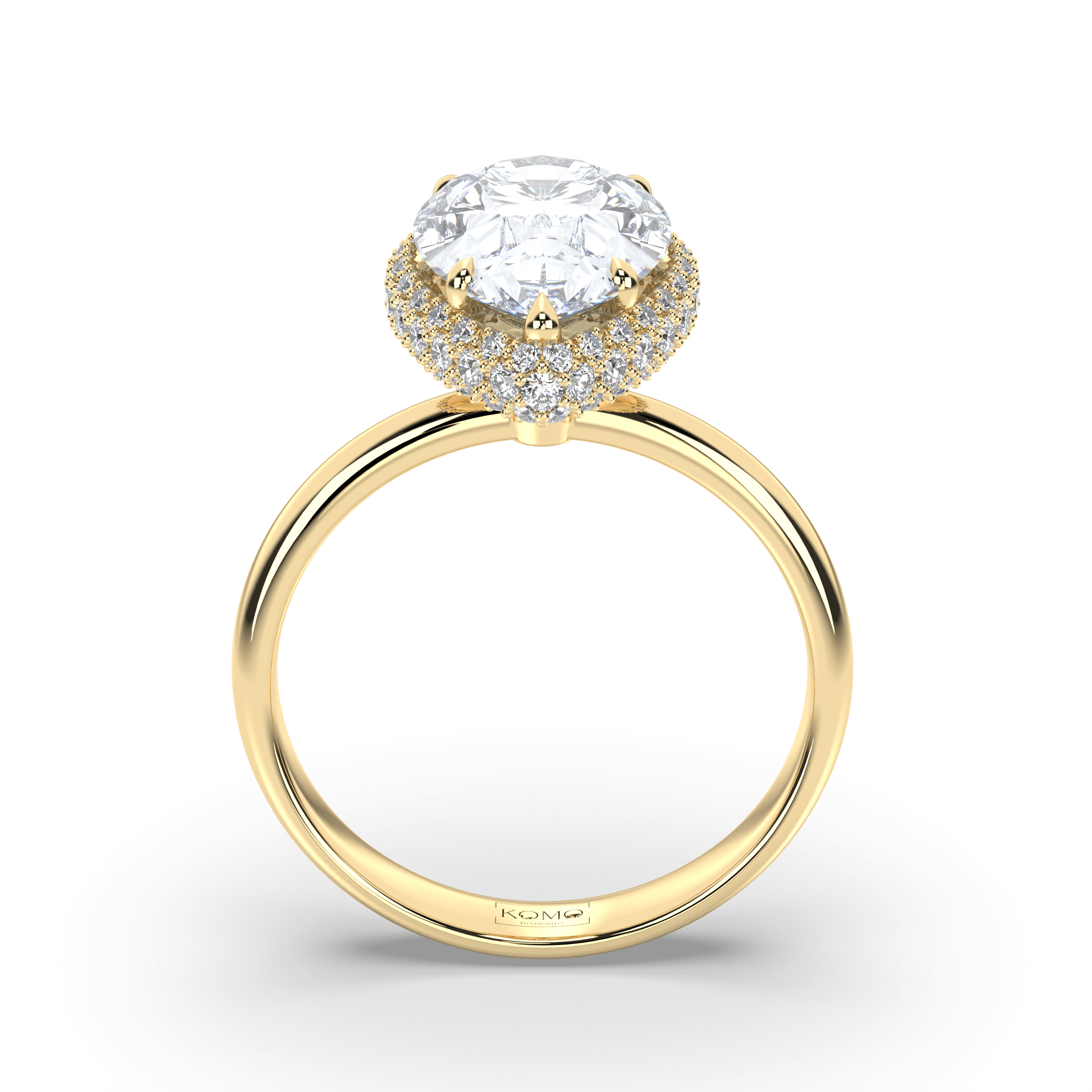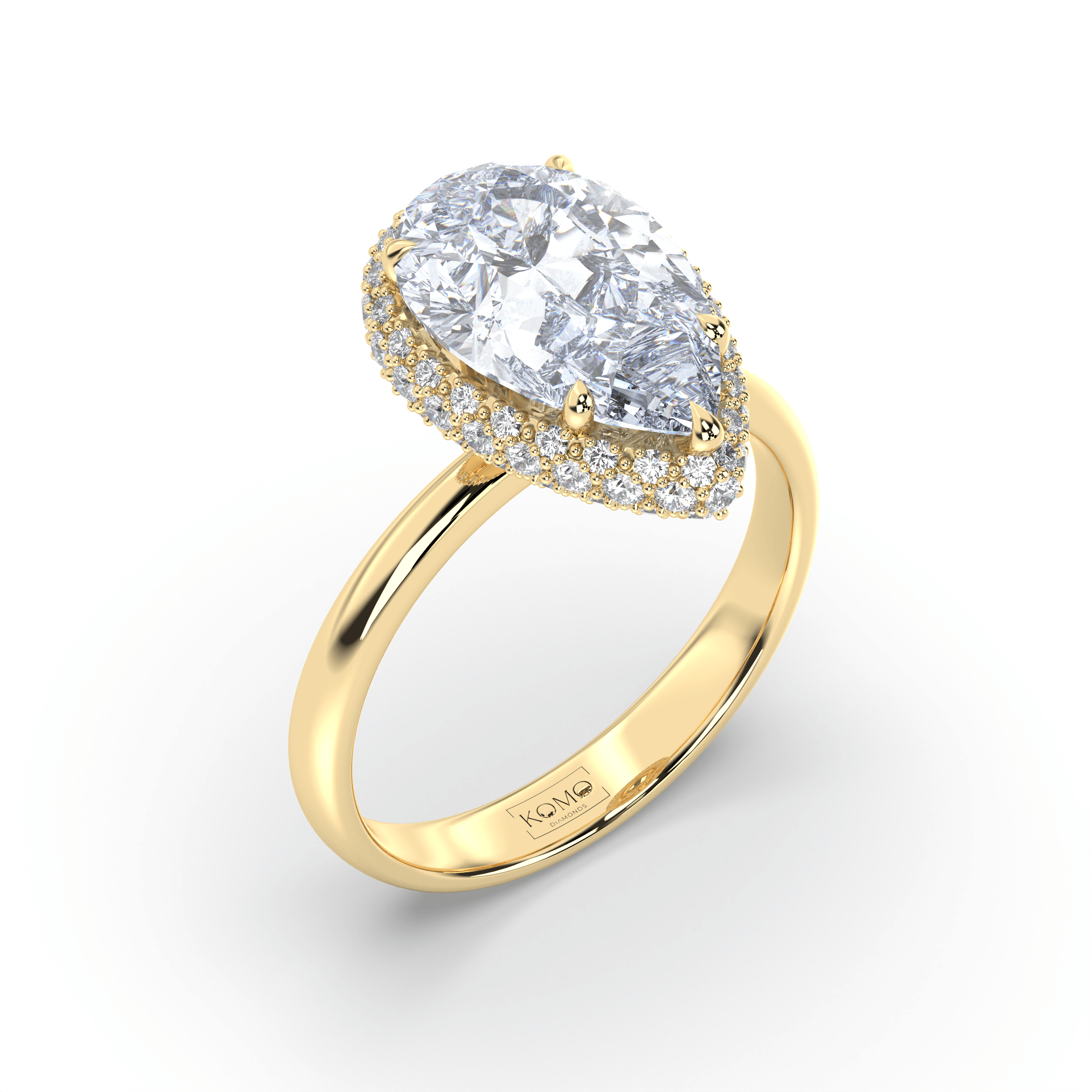 Experience lyrical romance where pear-cut brilliance meets halo enhancement in a graceful symbol of sustainable love and timeless feminine beauty.