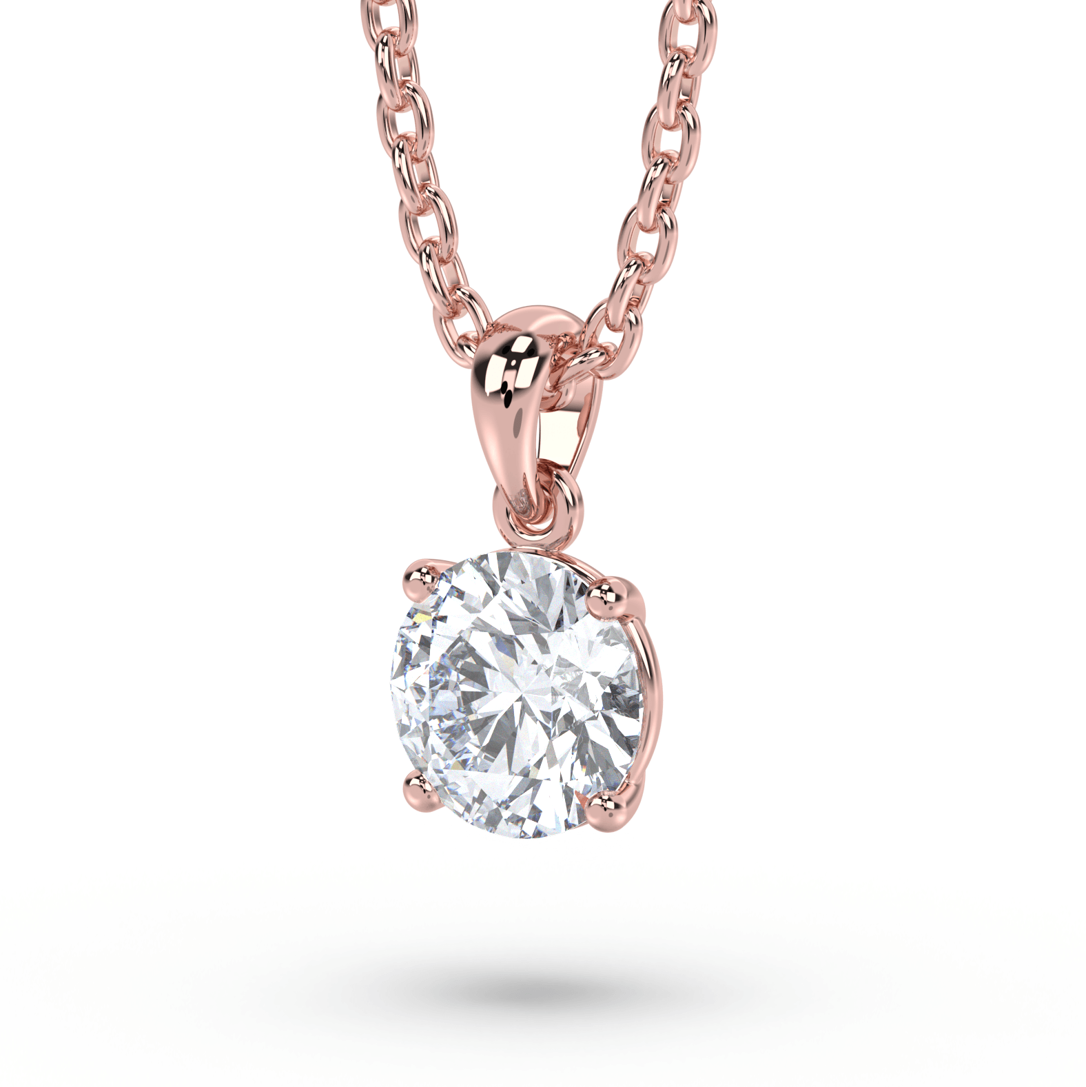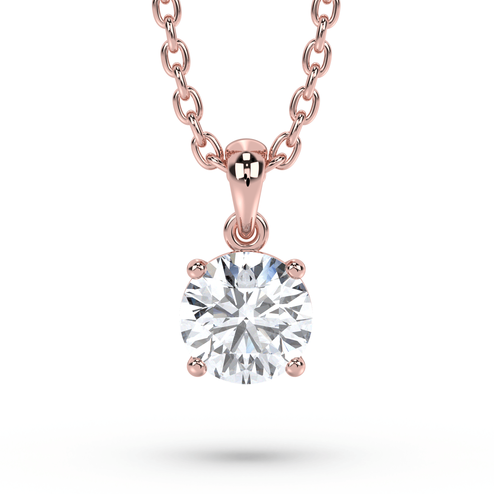 The Liora lab grown diamond pendant necklace features a stunning round lab grown diamond ranging from 1.00 to 5.00 carats with exceptional G+ color and VS1+ clarity, certified by IGI. This classic solitaire design celebrates the pure beauty of the diamond itself, allowing the center stone to showcase its natural brilliance without distraction.