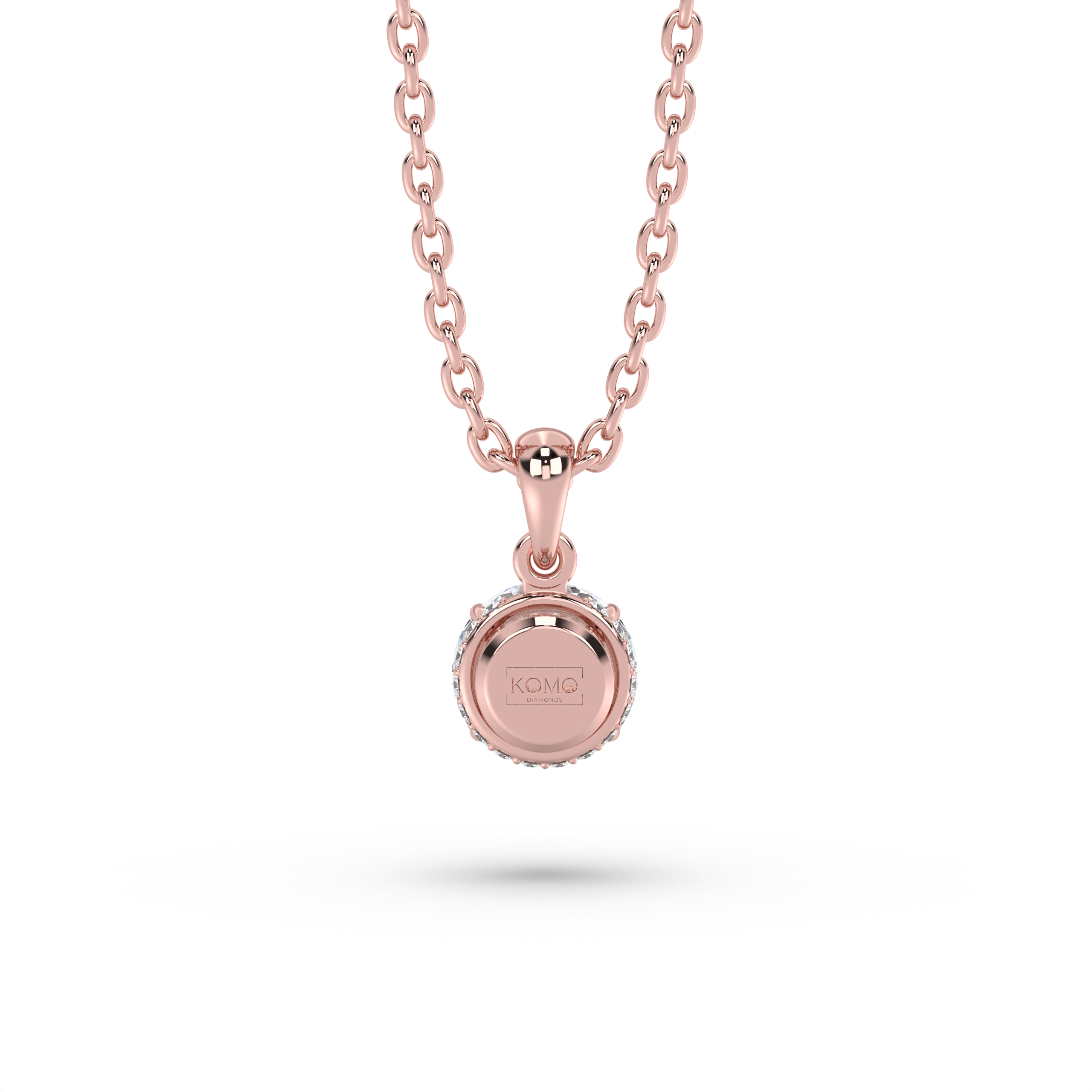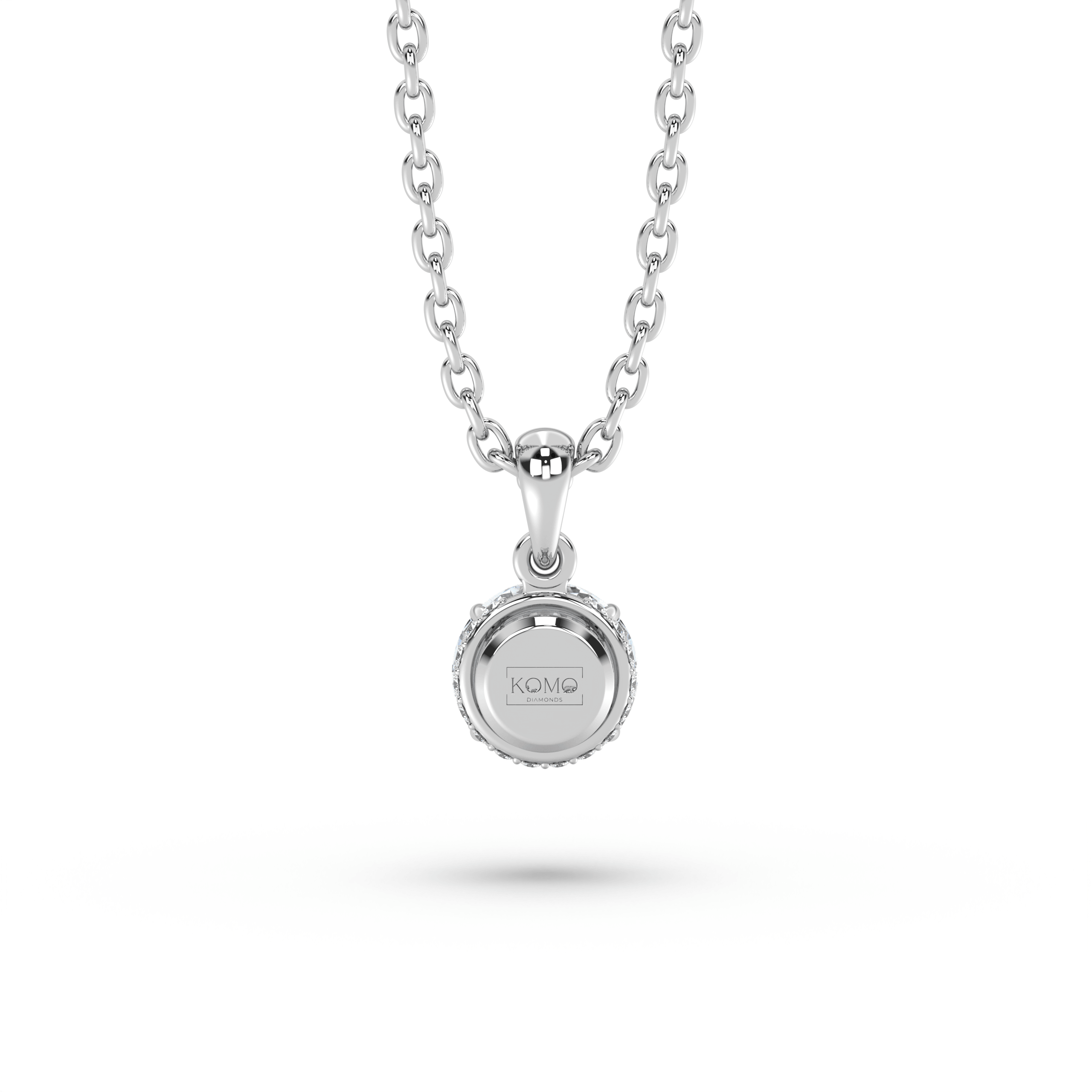 The Anastasia lab grown diamond pendant necklace from our Celestial collection features a stunning round lab grown diamond ranging from 1.00 to 5.00 carats with exceptional G+ color and VS1+ clarity, certified by IGI. Surrounded by a delicate halo of lab grown diamonds totaling 0.11-0.20 carats with pristine E color and VS1 clarity, this pendant embodies the weightless glow that defines Celestial jewelry.
