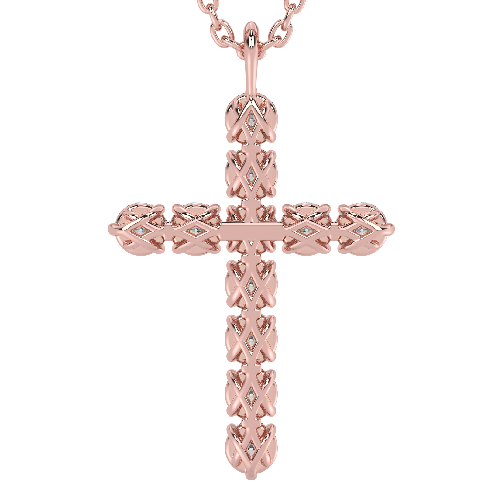 Each carefully selected diamond is an IGI-certified lab-grown stone featuring exceptional G+ color and VS1+ clarity, created using advanced CVD technology. The round brilliant cuts are thoughtfully positioned to create maximum fire and scintillation throughout the cross, transforming this sacred symbol into an elegant display of sustainable luxury and spiritual significance.