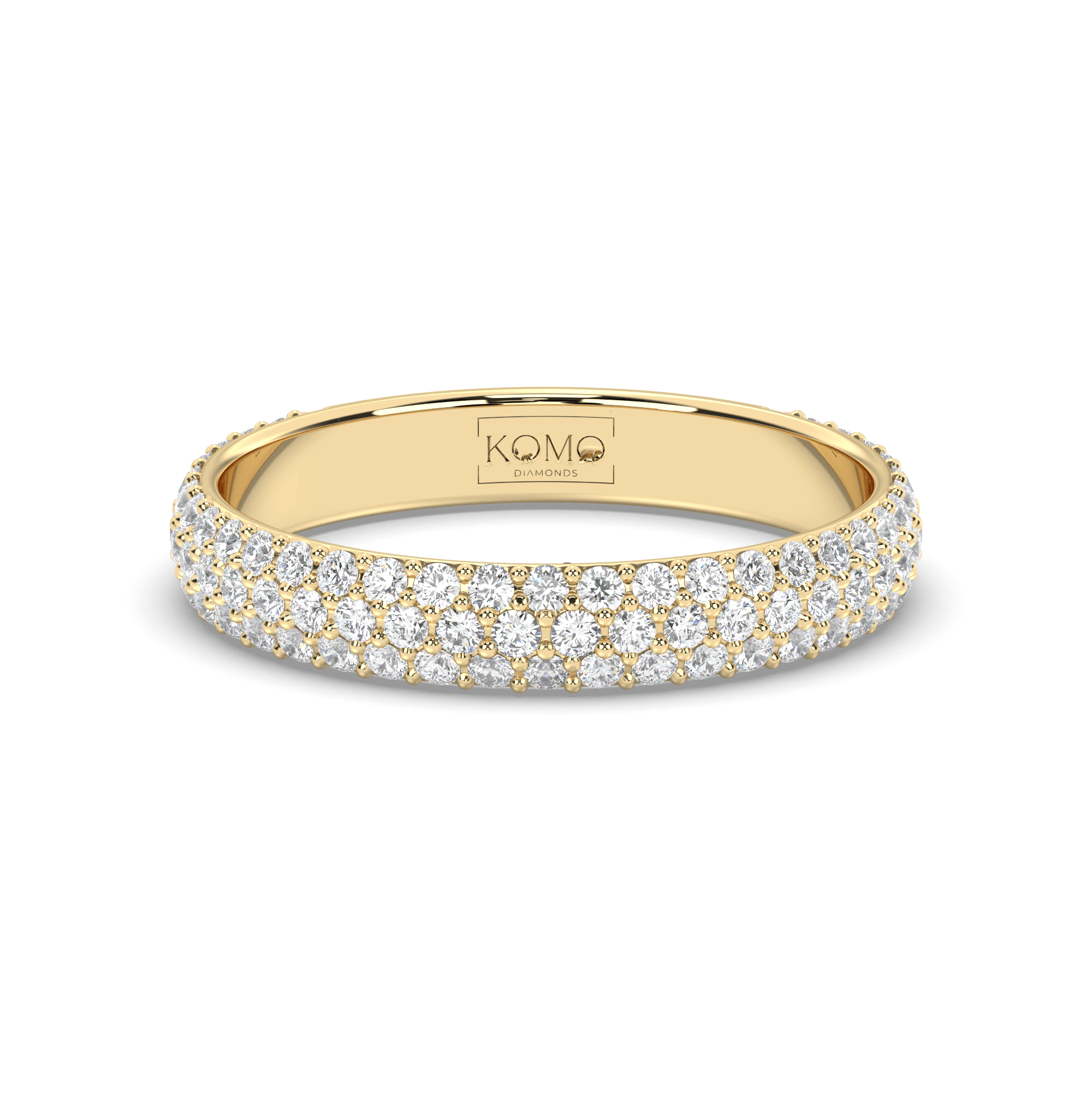 This refined design embodies the Celestial philosophy of shine without show-off, featuring delicate pavé that reads like stardust around your finger. The intentionally slim profile ensures comfortable everyday wear while maximizing scintillation from every angle, creating flashes of light with each movement.
